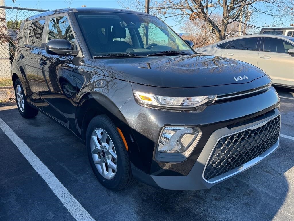 CARFAX One-Owner. Clean CARFAX. 2022 Kia Soul LX Cherry Black Kia Certified Pre-Owned Certified, 16" x 6.5" Alloy Wheels, Blind Spot Collision Warning, Driver Attention Warning, Exterior Parking Camera Rear, Forward Collision Avoidance Assist, Lane Change Assist, Lane Keeping Assist, Rear Cross-Traffic Collision Avoidance Assist, Remote keyless entry, Steering wheel mounted audio controls, Technology Package, 16" x 6.5" Steel Wheels, 4-Wheel Disc Brakes, 6 Speakers, ABS brakes, Air Conditioning, AM/FM radio, Apple CarPlay & Android Auto, Brake assist, Bumpers: body-color, Carpeted Floor Mats, Delay-off headlights, Driver door bin, Driver vanity mirror, Dual front impact airbags, Dual front side impact airbags, EC Mirror w/Compass & HomeLink, Electronic Stability Control, Front anti-roll bar, Front Bucket Seats, Front Center Armrest, Front reading lights, Front wheel independent suspension, Fully automatic headlights, Illuminated entry, Low tire pressure warning, Occupant sensing airbag, Outside temperature display, Overhead airbag, Overhead console, Panic alarm, Passenger door bin, Passenger vanity mirror, Power door mirrors, Power steering, Power windows, Radio: AM/FM/MP3 Audio System, Rear window defroster, Rear window wiper, Speed control, Speed-sensing steering, Split folding rear seat, Tachometer, Telescoping steering wheel, Tilt steering wheel, Traction control, Trip computer, Variably intermittent wipers, Woven & Tricot Cloth Seat Trim, 16" x 6.5" Alloy Wheels, Blind Spot Collision Warning, Driver Attention Warning, Exterior Parking Camera Rear, Forward Collision Avoidance Assist, Lane Change Assist, Lane Keeping Assist, Rear Cross-Traffic Collision Avoidance Assist, Remote keyless entry, Steering wheel mounted audio controls, Technology Package.