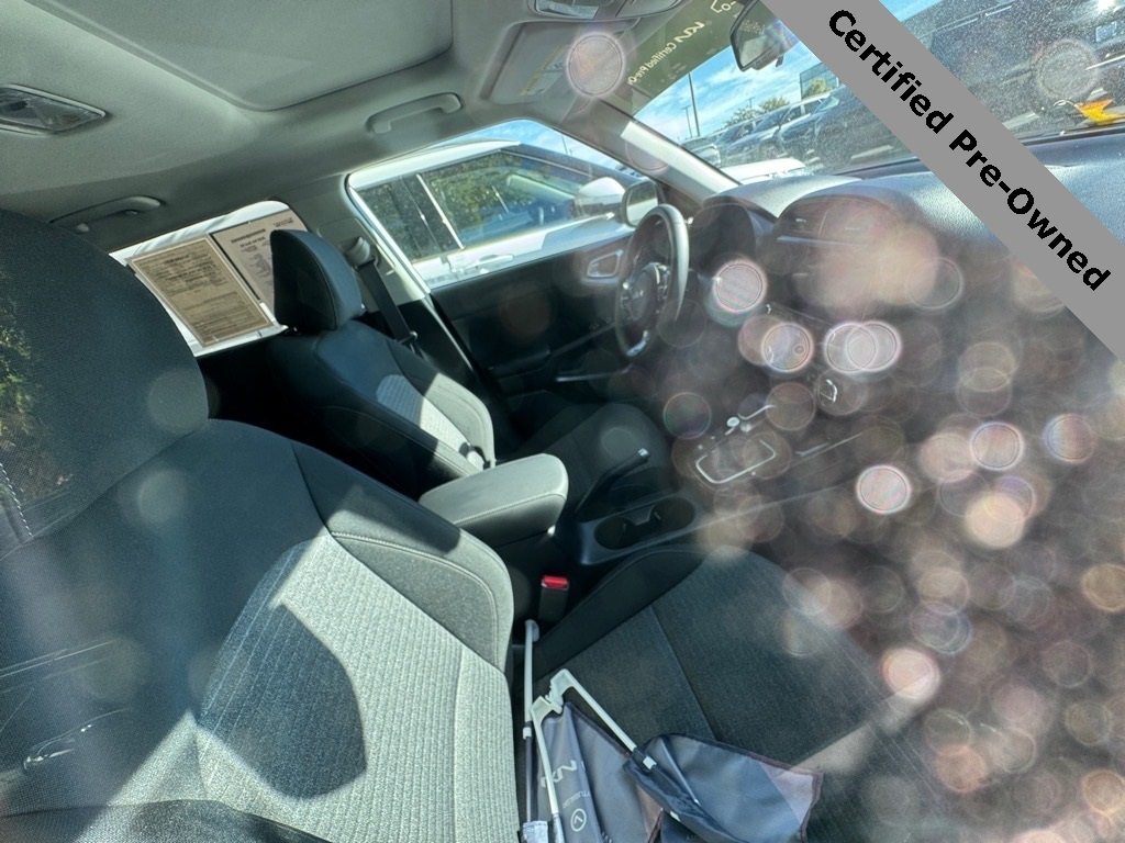 CARFAX One-Owner. Clean CARFAX. 2025 Kia Soul EX Snow White Pearl Kia Certified Pre-Owned Certified, 4-Wheel Disc Brakes, 6 Speakers, 6.5J x 17" Alloy Wheels, ABS brakes, Air Conditioning, Alloy wheels, AM/FM radio: SiriusXM, Apple CarPlay & Android Auto, Auto High-beam Headlights, Automatic temperature control, Brake assist, Bumpers: body-color, Cargo Net, Carpeted Floor Mats, Compass, Delay-off headlights, Driver door bin, Driver vanity mirror, Dual front impact airbags, Dual front side impact airbags, Electronic Stability Control, Emergency communication system, Exterior Parking Camera Rear, Front anti-roll bar, Front Bucket Seats, Front Center Armrest, Front dual zone A/C, Front reading lights, Front wheel independent suspension, Fully automatic headlights, Heated door mirrors, Heated Front Bucket Seats, Heated front seats, Illuminated entry, Leather Shift Knob, Leather steering wheel, Low tire pressure warning, Navigation System, Occupant sensing airbag, Outside temperature display, Overhead airbag, Overhead console, Panic alarm, Passenger door bin, Passenger vanity mirror, Power door mirrors, Power driver seat, Power moonroof, Power steering, Power windows, Radio data system, Radio: AM/FM/MP3/HD Audio System, Rear seat center armrest, Rear window defroster, Rear window wiper, Remote keyless entry, Speed control, Speed-sensing steering, Split folding rear seat, Steering wheel mounted audio controls, Tachometer, Telescoping steering wheel, Tilt steering wheel, Traction control, Trip computer, Variably intermittent wipers, Woven & Tricot Premium Cloth Seat Trim.