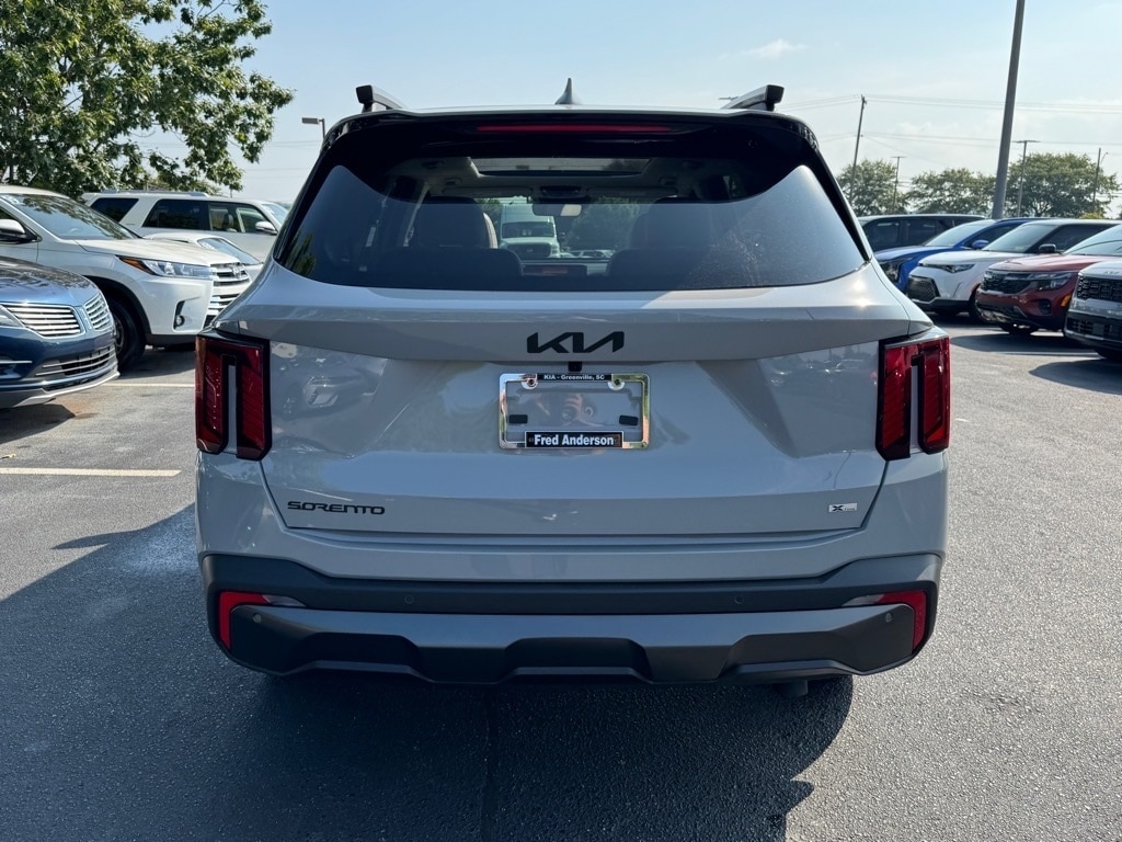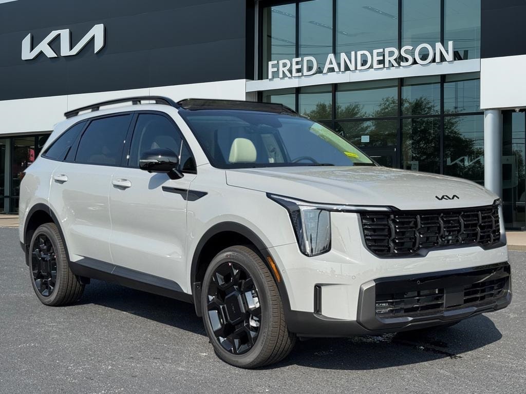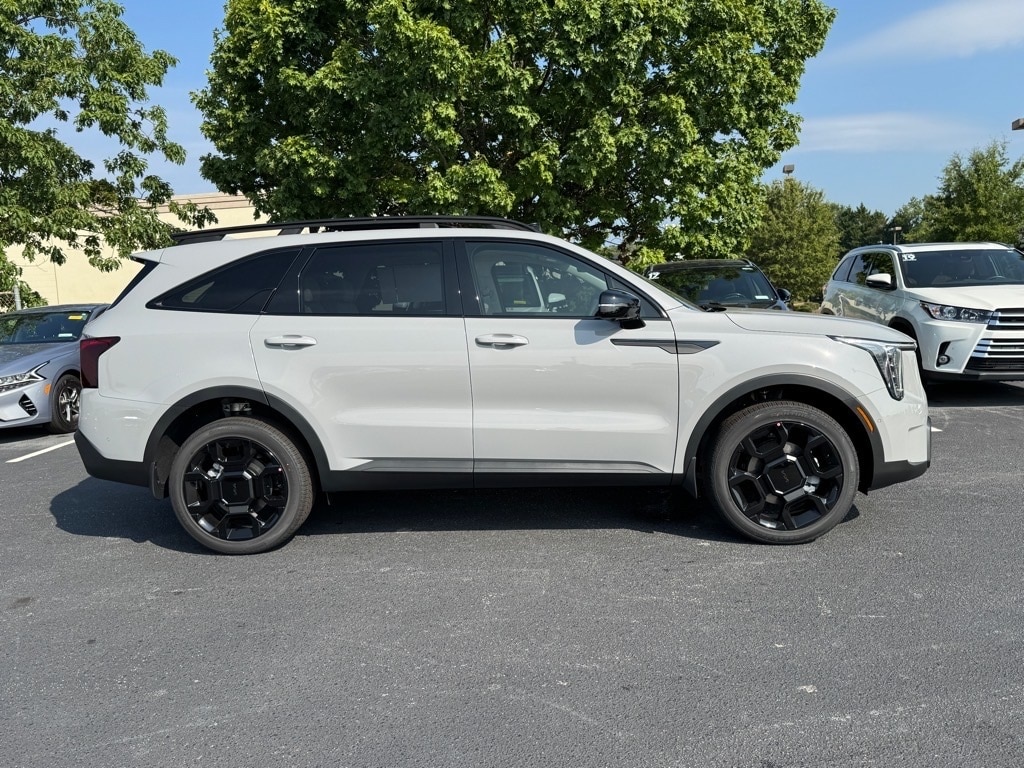 2025 Kia Sorento X-Line SX Wolf Gray AWD, 3rd row seats: split-bench, 4-Wheel Disc Brakes, 6 Speakers, ABS brakes, Air Conditioning, Alloy wheels, AM/FM radio: SiriusXM, Apple CarPlay & Android Auto, Auto High-beam Headlights, Auto-dimming Rear-View mirror, Automatic temperature control, Brake assist, Bumpers: body-color, Carpet Cargo Mat w/Seatback Protection, Carpeted Floor Mats, Delay-off headlights, Driver door bin, Driver vanity mirror, Dual front impact airbags, Dual front side impact airbags, Electronic Stability Control, Emergency communication system: 911 Connect, Exterior Parking Camera Rear, Four wheel independent suspension, Front anti-roll bar, Front Bucket Seats, Front Center Armrest, Front dual zone A/C, Front fog lights, Front reading lights, Fully automatic headlights, Heated & Ventilated Front Bucket Seats, Heated door mirrors, Heated front seats, Illuminated entry, Knee airbag, Leather steering wheel, Low tire pressure warning, Navigation System, Occupant sensing airbag, Outside temperature display, Overhead airbag, Overhead console, Panic alarm, Passenger door bin, Passenger vanity mirror, Power door mirrors, Power driver seat, Power Liftgate, Power moonroof, Power passenger seat, Power steering, Power windows, Radio data system, Radio: AM/FM Standard Sound System, Rain sensing wipers, Rear anti-roll bar, Rear reading lights, Rear side impact airbag, Rear window defroster, Rear window wiper, Remote keyless entry, Security system, Speed control, Speed-sensing steering, Split folding rear seat, Spoiler, Steering wheel mounted audio controls, SynTex Artificial Leather Seat Trim, Tachometer, Telescoping steering wheel, Tilt steering wheel, Traction control, Trip computer, Turn signal indicator mirrors, Variably intermittent wipers, Ventilated front seats, Wheels: 20" Gloss Black X-Line Alloy, X-Line Mudguards, AWD.