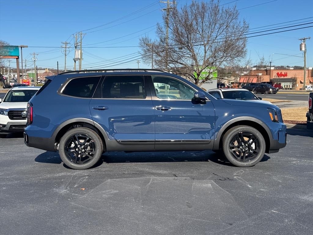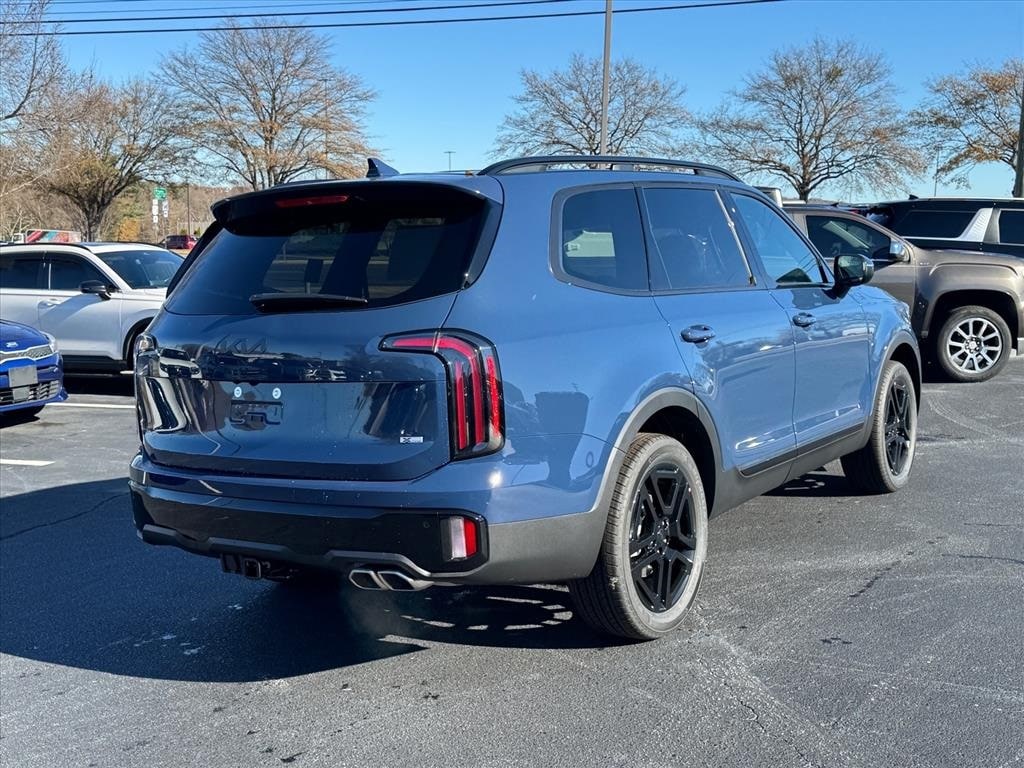 2025 Kia Telluride EX X-Line Midnight Lake Blue 3rd row seats: split-bench, 4-Wheel Disc Brakes, 6 Speakers, ABS brakes, Air Conditioning, Alloy wheels, AM/FM radio: SiriusXM, Apple CarPlay & Android Auto, Auto High-beam Headlights, Auto-dimming Rear-View mirror, Auto-leveling suspension, Automatic temperature control, Brake assist, Bumpers: body-color, Carpeted Floor Mats, Compass, Delay-off headlights, Driver door bin, Driver vanity mirror, Dual front impact airbags, Dual front side impact airbags, Electronic Stability Control, Emergency communication system: 911 Connect, Exterior Parking Camera Rear, Four wheel independent suspension, Front anti-roll bar, Front Bucket Seats, Front Center Armrest, Front dual zone A/C, Front reading lights, Fully automatic headlights, Heated & Ventilated Front Bucket Seats, Heated door mirrors, Heated front seats, Heated steering wheel, Illuminated entry, Knee airbag, Leather Seat Trim, Leather Shift Knob, Leather steering wheel, Low tire pressure warning, Navigation System, Occupant sensing airbag, Outside temperature display, Overhead airbag, Overhead console, Panic alarm, Passenger door bin, Passenger vanity mirror, Power door mirrors, Power driver seat, Power Liftgate, Power moonroof, Power passenger seat, Power steering, Power windows, Radio data system, Radio: AM/FM Display Audio System, Rear air conditioning, Rear anti-roll bar, Rear audio controls, Rear reading lights, Rear side impact airbag, Rear window defroster, Rear window wiper, Reclining 3rd row seat, Remote keyless entry, Security system, Speed control, Speed-sensing steering, Split folding rear seat, Spoiler, Steering wheel mounted audio controls, Tachometer, Telescoping steering wheel, Tilt steering wheel, Tow Hitch w/Cover, Traction control, Trip computer, Turn signal indicator mirrors, Variably intermittent wipers, Ventilated front seats, Wheels: 20" x 7.5" Black Finish X-LINE Exclusive.