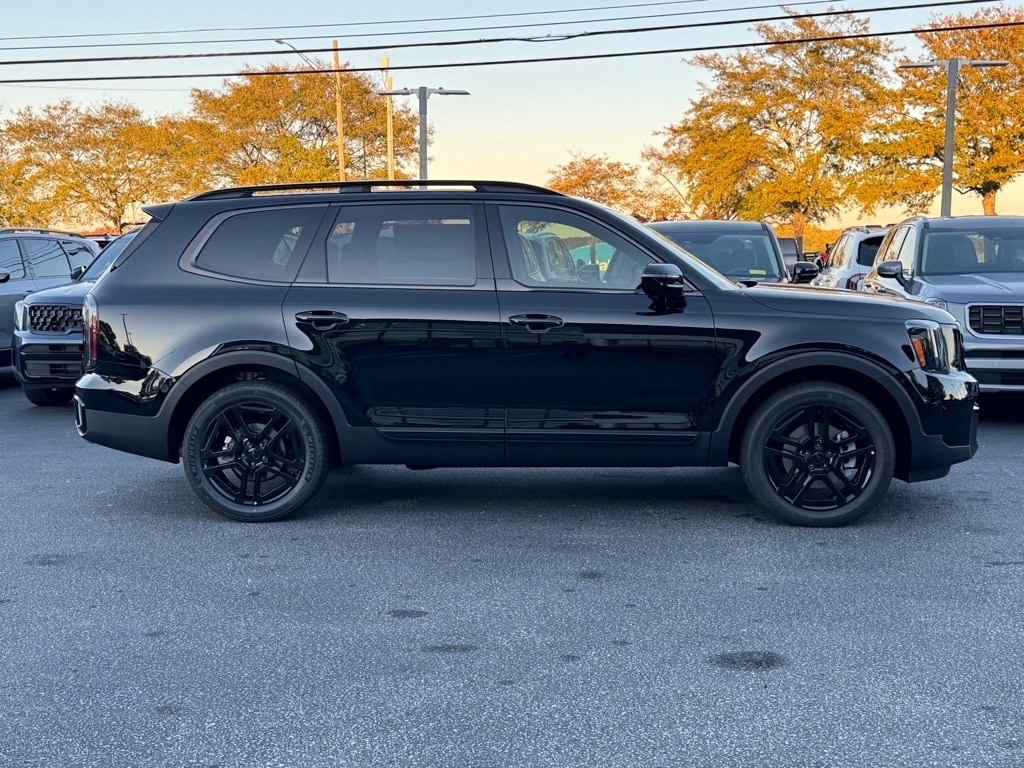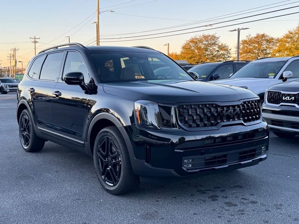 2025 Kia Telluride SX X-Line Ebony Black 10 Speakers, 3rd row seats: split-bench, 4-Wheel Disc Brakes, ABS brakes, Air Conditioning, Alloy wheels, AM/FM radio: SiriusXM, Apple CarPlay & Android Auto, Auto High-beam Headlights, Auto-dimming Rear-View mirror, Auto-leveling suspension, Automatic temperature control, Brake assist, Bumpers: body-color, Carpet Cargo Mat w/Seatback Protection, Carpeted Floor Mats, Compass, Delay-off headlights, Driver door bin, Driver vanity mirror, Dual front impact airbags, Dual front side impact airbags, Electronic Stability Control, Emergency communication system: 911 Connect, Exterior Parking Camera Rear, Four wheel independent suspension, Front anti-roll bar, Front Bucket Seats, Front Center Armrest, Front dual zone A/C, Front fog lights, Front reading lights, Fully automatic headlights, Garage door transmitter: HomeLink, harman/kardon® Speakers, Heated & Ventilated Front Bucket Seats, Heated door mirrors, Heated front seats, Heated steering wheel, Illuminated entry, Knee airbag, Leather Seat Trim, Leather Shift Knob, Leather steering wheel, Low tire pressure warning, Memory seat, Navigation System, Occupant sensing airbag, Outside temperature display, Overhead airbag, Overhead console, Panic alarm, Passenger door bin, Passenger vanity mirror, Power door mirrors, Power driver seat, Power Liftgate, Power moonroof, Power passenger seat, Power steering, Power windows, Radio data system, Radio: AM/FM Harman Kardon Audio System, Rear air conditioning, Rear anti-roll bar, Rear audio controls, Rear reading lights, Rear side impact airbag, Rear window defroster, Rear window wiper, Reclining 3rd row seat, Remote keyless entry, Security system, Speed control, Speed-sensing steering, Split folding rear seat, Spoiler, Steering wheel mounted audio controls, Tachometer, Telescoping steering wheel, Terracotta Interior Color Package, Tilt steering wheel, Tow Hitch w/Cover, Traction control, Trip computer, Turn signal indicator mirrors, Variably intermittent wipers, Ventilated front seats, Wheels: 20" x 7.5" Black Finish X-LINE Exclusive.