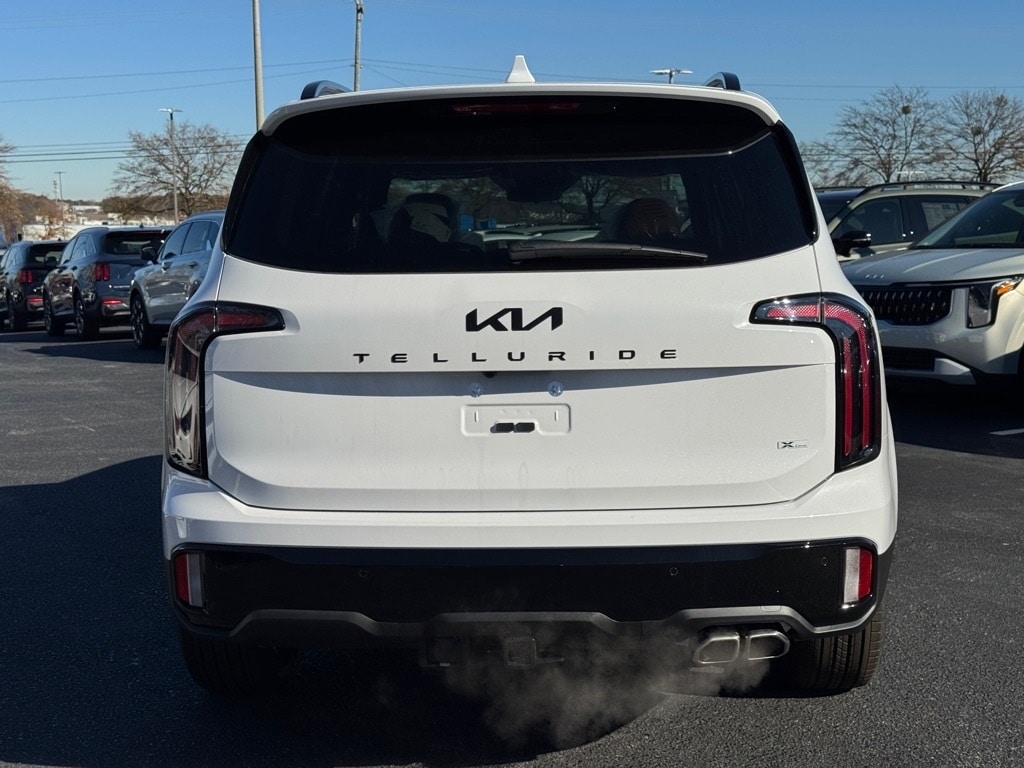 2025 Kia Telluride SX-Prestige X-Line Glacial White Pearl 10 Speakers, 3rd row seats: split-bench, 4-Wheel Disc Brakes, ABS brakes, Air Conditioning, Alloy wheels, AM/FM radio: SiriusXM, Apple CarPlay & Android Auto, Auto High-beam Headlights, Auto-dimming Rear-View mirror, Auto-leveling suspension, Automatic temperature control, Brake assist, Bumpers: body-color, Carpeted Floor Mats, Compass, Delay-off headlights, Driver door bin, Driver vanity mirror, Dual front impact airbags, Dual front side impact airbags, Electronic Stability Control, Emergency communication system: 911 Connect, Exterior Parking Camera Rear, Four wheel independent suspension, Front anti-roll bar, Front Bucket Seats, Front Center Armrest, Front dual zone A/C, Front fog lights, Front reading lights, Fully automatic headlights, Garage door transmitter: HomeLink, harman/kardon® Speakers, Heads-Up Display, Heated & Ventilated Front Bucket Seats, Heated door mirrors, Heated front seats, Heated rear seats, Heated steering wheel, Illuminated entry, Knee airbag, Leather Shift Knob, Leather steering wheel, Low tire pressure warning, Memory seat, Nappa Leather Seat Trim, Navigation System, Occupant sensing airbag, Outside temperature display, Overhead airbag, Overhead console, Panic alarm, Passenger door bin, Passenger vanity mirror, Power door mirrors, Power driver seat, Power Liftgate, Power moonroof, Power passenger seat, Power steering, Power windows, Radio data system, Radio: AM/FM Harman Kardon Audio System, Rain sensing wipers, Rear air conditioning, Rear anti-roll bar, Rear audio controls, Rear reading lights, Rear side impact airbag, Rear window defroster, Rear window wiper, Reclining 3rd row seat, Remote keyless entry, Security system, Speed control, Speed-sensing steering, Split folding rear seat, Spoiler, Steering wheel mounted audio controls, Tachometer, Telescoping steering wheel, Terracotta Interior Color Package, Tilt steering wheel, Tow Hitch w/Cover, Traction control, Trip computer, Turn signal indicator mirrors, Variably intermittent wipers, Ventilated front seats, Ventilated rear seats, Wheels: 20" x 7.5" Black Finish X-LINE Exclusive.