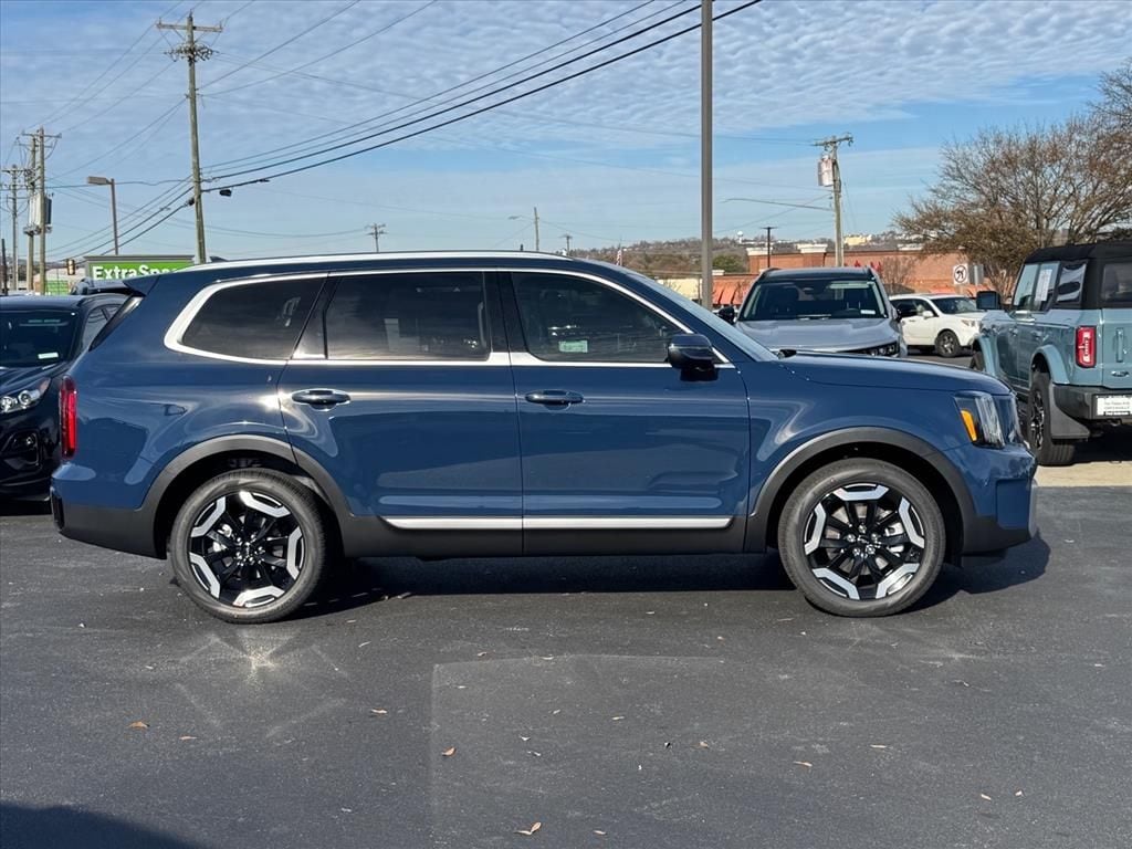 2025 Kia Telluride S Midnight Lake Blue 3rd row seats: split-bench, 4-Wheel Disc Brakes, 6 Speakers, ABS brakes, Air Conditioning, Alloy wheels, AM/FM radio: SiriusXM, Apple CarPlay & Android Auto, Auto High-beam Headlights, Automatic temperature control, Brake assist, Bumpers: body-color, Carpeted Floor Mats, Delay-off headlights, Driver door bin, Driver vanity mirror, Dual front impact airbags, Dual front side impact airbags, Electronic Stability Control, Emergency communication system: 911 Connect, Exterior Parking Camera Rear, Four wheel independent suspension, Front anti-roll bar, Front Bucket Seats, Front Center Armrest, Front dual zone A/C, Front reading lights, Fully automatic headlights, Heated door mirrors, Heated Front Bucket Seats, Heated front seats, Illuminated entry, Knee airbag, Leather Shift Knob, Leather steering wheel, Low tire pressure warning, Navigation System, Occupant sensing airbag, Outside temperature display, Overhead airbag, Overhead console, Panic alarm, Passenger door bin, Passenger vanity mirror, Power door mirrors, Power driver seat, Power Liftgate, Power moonroof, Power steering, Power windows, Radio data system, Radio: AM/FM Display Audio System, Rear air conditioning, Rear anti-roll bar, Rear audio controls, Rear reading lights, Rear side impact airbag, Rear window defroster, Rear window wiper, Reclining 3rd row seat, Remote keyless entry, Security system, Speed control, Speed-sensing steering, Split folding rear seat, Spoiler, Steering wheel mounted audio controls, SynTex Synthetic Leather Seat Trim, Tachometer, Telescoping steering wheel, Tilt steering wheel, Traction control, Trip computer, Turn signal indicator mirrors, Variably intermittent wipers, Wheels: 20" x 7.5" Black Finish.