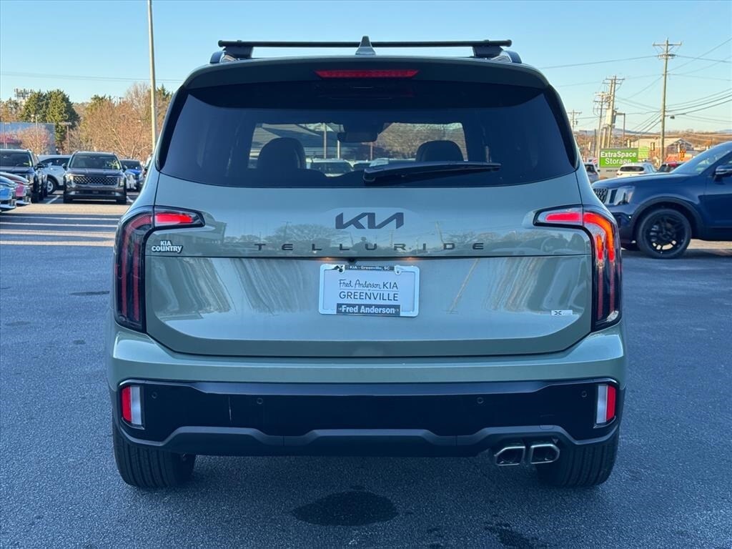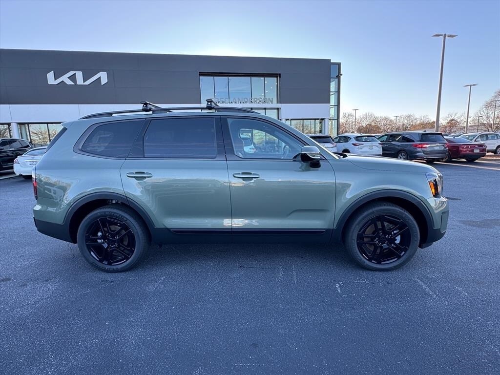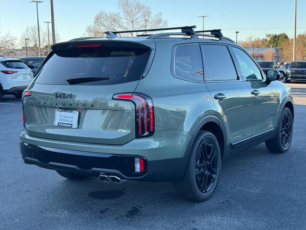 2025 Kia Telluride SX X-Line Jungle Green 10 Speakers, 3rd row seats: split-bench, 4-Wheel Disc Brakes, ABS brakes, Air Conditioning, Alloy wheels, AM/FM radio: SiriusXM, Apple CarPlay & Android Auto, Auto High-beam Headlights, Auto-dimming Rear-View mirror, Auto-leveling suspension, Automatic temperature control, Brake assist, Bumpers: body-color, Compass, Cross Bars X-Line, Delay-off headlights, Driver door bin, Driver vanity mirror, Dual front impact airbags, Dual front side impact airbags, Electronic Stability Control, Emergency communication system: 911 Connect, Exterior Parking Camera Rear, Four wheel independent suspension, Front anti-roll bar, Front Bucket Seats, Front Center Armrest, Front dual zone A/C, Front fog lights, Front reading lights, Fully automatic headlights, Garage door transmitter: HomeLink, harman/kardon® Speakers, Heated & Ventilated Front Bucket Seats, Heated door mirrors, Heated front seats, Heated steering wheel, Illuminated entry, Knee airbag, Leather Seat Trim, Leather Shift Knob, Leather steering wheel, Low tire pressure warning, Memory seat, Navigation System, Occupant sensing airbag, Outside temperature display, Overhead airbag, Overhead console, Panic alarm, Passenger door bin, Passenger vanity mirror, Power door mirrors, Power driver seat, Power Liftgate, Power moonroof, Power passenger seat, Power steering, Power windows, Radio data system, Radio: AM/FM Harman Kardon Audio System, Rear air conditioning, Rear anti-roll bar, Rear audio controls, Rear reading lights, Rear side impact airbag, Rear window defroster, Rear window wiper, Reclining 3rd row seat, Remote keyless entry, Security system, Speed control, Speed-sensing steering, Split folding rear seat, Spoiler, Steering wheel mounted audio controls, Tachometer, Telescoping steering wheel, Terracotta Interior Color Package, Tilt steering wheel, Traction control, Trip computer, Turn signal indicator mirrors, Variably intermittent wipers, Ventilated front seats, Wheels: 20" x 7.5" Black Finish X-LINE Exclusive.