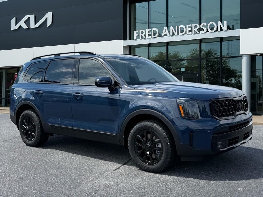 2025 Kia Telluride SX-Prestige X-Pro Midnight Lake Blue 10 Speakers, 3rd row seats: split-bench, 4-Wheel Disc Brakes, ABS brakes, Air Conditioning, Alloy wheels, AM/FM radio: SiriusXM, Apple CarPlay & Android Auto, Auto High-beam Headlights, Auto-dimming Rear-View mirror, Auto-leveling suspension, Automatic temperature control, Brake assist, Bumpers: body-color, Carpet Cargo Mat w/Seatback Protection, Compass, Delay-off headlights, Driver door bin, Driver vanity mirror, Dual front impact airbags, Dual front side impact airbags, Electronic Stability Control, Emergency communication system: 911 Connect, Exterior Parking Camera Rear, Four wheel independent suspension, Front anti-roll bar, Front Bucket Seats, Front Center Armrest, Front dual zone A/C, Front fog lights, Front reading lights, Fully automatic headlights, Garage door transmitter: HomeLink, harman/kardon® Speakers, Heads-Up Display, Heated & Ventilated Front Bucket Seats, Heated door mirrors, Heated front seats, Heated rear seats, Heated steering wheel, Illuminated entry, Knee airbag, Leather Shift Knob, Leather steering wheel, Low tire pressure warning, Memory seat, Mud Guard Kit, Nappa Leather Seat Trim, Navigation System, Occupant sensing airbag, Outside temperature display, Overhead airbag, Overhead console, Panic alarm, Passenger door bin, Passenger vanity mirror, Power door mirrors, Power driver seat, Power Liftgate, Power moonroof, Power passenger seat, Power steering, Power windows, Radio data system, Radio: AM/FM Harman Kardon Audio System, Rain sensing wipers, Rear air conditioning, Rear anti-roll bar, Rear audio controls, Rear reading lights, Rear side impact airbag, Rear window defroster, Rear window wiper, Reclining 3rd row seat, Remote keyless entry, Security system, Speed control, Speed-sensing steering, Split folding rear seat, Spoiler, Steering wheel mounted audio controls, Tachometer, Telescoping steering wheel, Terracotta Interior Color Package, Tilt steering wheel, Traction control, Trip computer, Turn signal indicator mirrors, Variably intermittent wipers, Ventilated front seats, Ventilated rear seats, Wheels: 18" x 7.5" Black Finish X-PRO Exclusive.