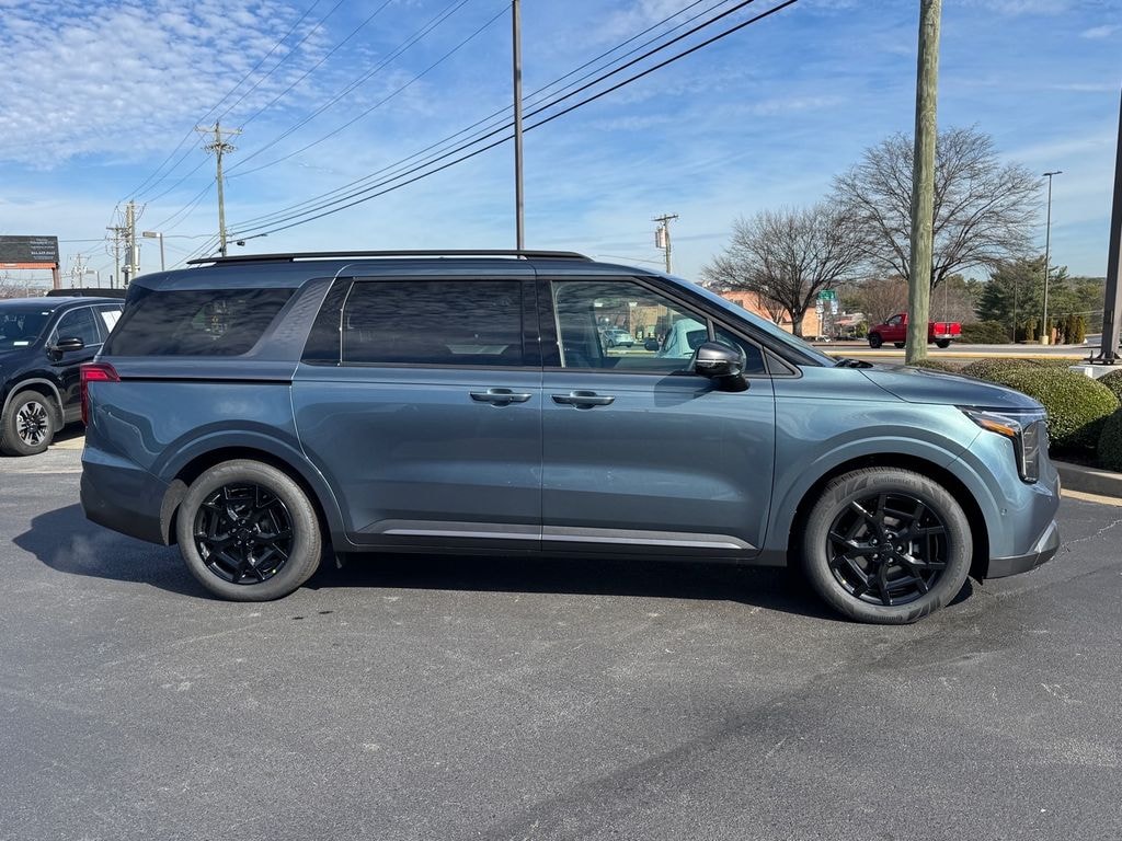 2026 Kia Carnival SX Astra Blue 3.51 Axle Ratio, 3rd row seats: split-bench, 4-Wheel Disc Brakes, 8 Speakers, ABS brakes, Air Conditioning, Alloy wheels, AM/FM radio: SiriusXM, Apple CarPlay & Android Auto, Artificial Leather Seat Trim, Auto High-beam Headlights, Auto-Dimming Mirror with HomeLink, Automatic temperature control, Brake assist, Bumpers: body-color, Cargo Mat, Carpeted Floor Mats (8-Passenger), Compass, Dark Edition Front Grille Trim, Dark Edition Mirror Caps, Delay-off headlights, Driver door bin, Driver vanity mirror, Dual front impact airbags, Dual front side impact airbags, Electronic Stability Control, Emergency communication system, Exterior Parking Camera Rear, Four wheel independent suspension, Front anti-roll bar, Front Bucket Seats, Front Center Armrest, Front dual zone A/C, Front fog lights, Front reading lights, Fully automatic headlights, Heated and Ventilated Front Bucket Seats, Heated door mirrors, Heated front seats, Illuminated entry, Knee airbag, Leather Shift Knob, Leather steering wheel, Low tire pressure warning, Memory seat, Navigation System, Occupant sensing airbag, Outside temperature display, Overhead airbag, Overhead console, Panic alarm, Passenger door bin, Passenger vanity mirror, Power 2nd-Row Moonroof, Power door mirrors, Power driver seat, Power Liftgate, Power moonroof, Power passenger seat, Power steering, Power windows, Radio: AM/FM/HD Audio System, Rain sensing wipers, Rear air conditioning, Rear anti-roll bar, Rear reading lights, Rear window defroster, Rear window wiper, Reclining 3rd row seat, Remote keyless entry, Security system, Speed control, Speed-sensing steering, Split folding rear seat, Spoiler, Steering wheel mounted audio controls, SX Dark Edition Package, Tachometer, Telescoping steering wheel, Tilt steering wheel, Traction control, Trip computer, Turn signal indicator mirrors, Variably intermittent wipers, Ventilated front seats, Wheels: 7.5J x 19" Alloy Dark Edition, Wheels: 7.5J x 19" Black Alloy.