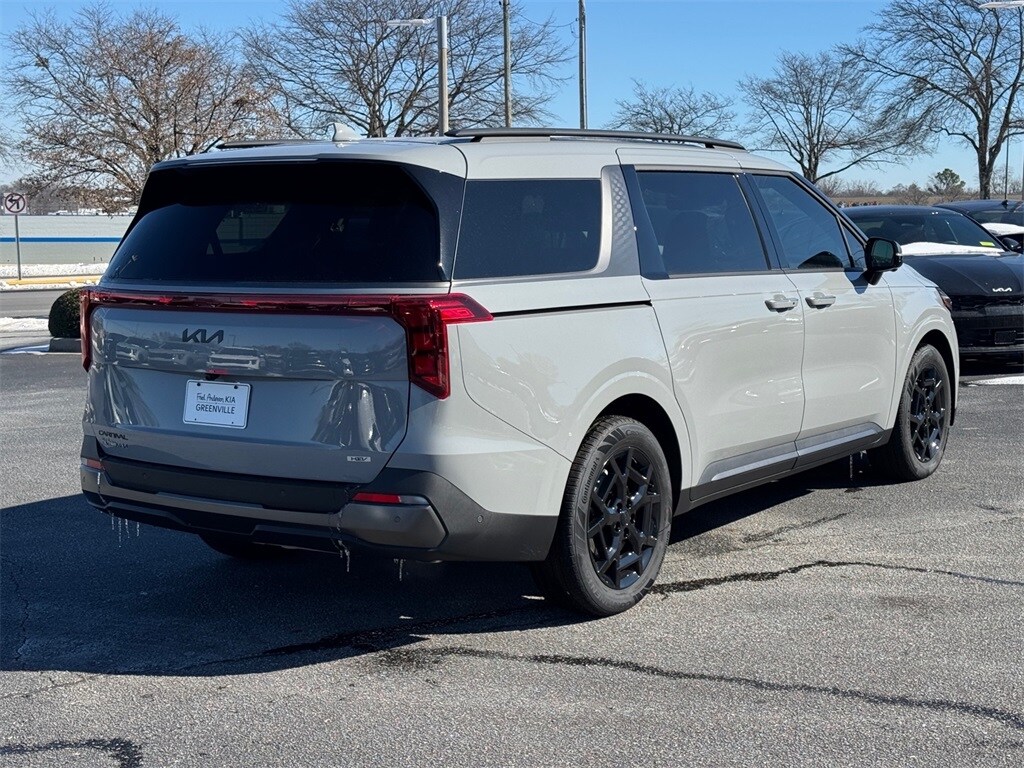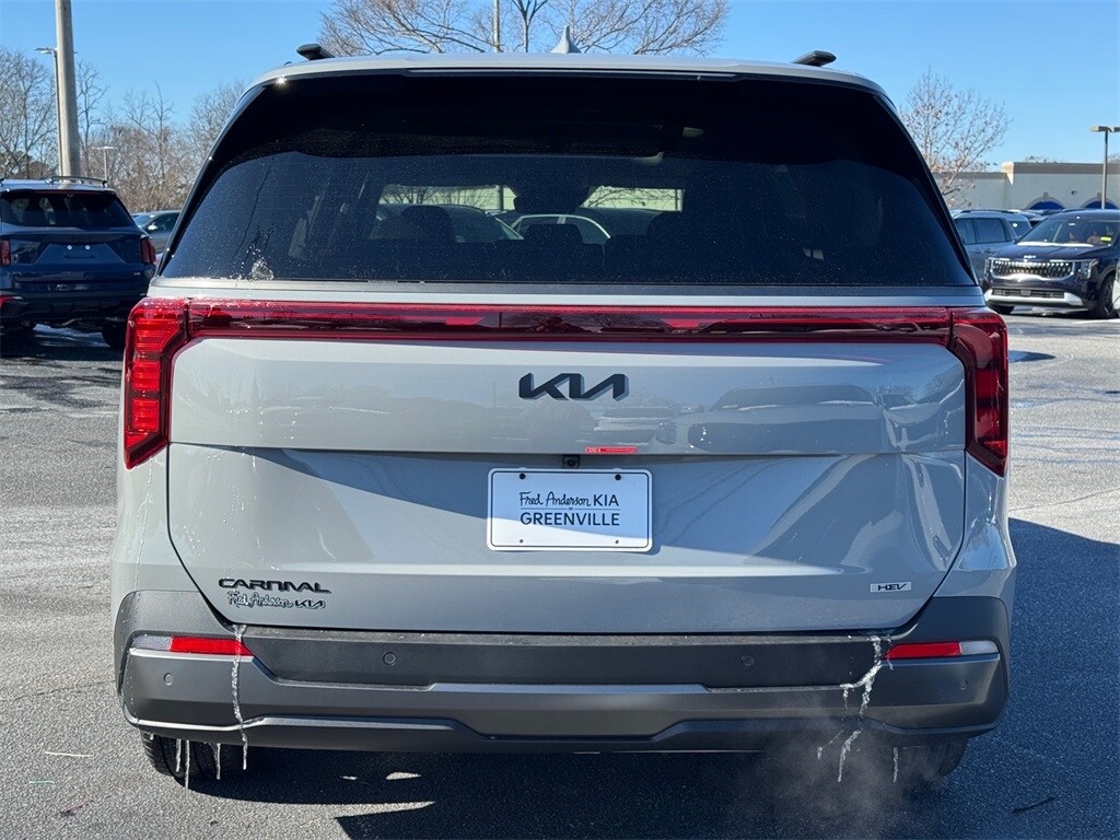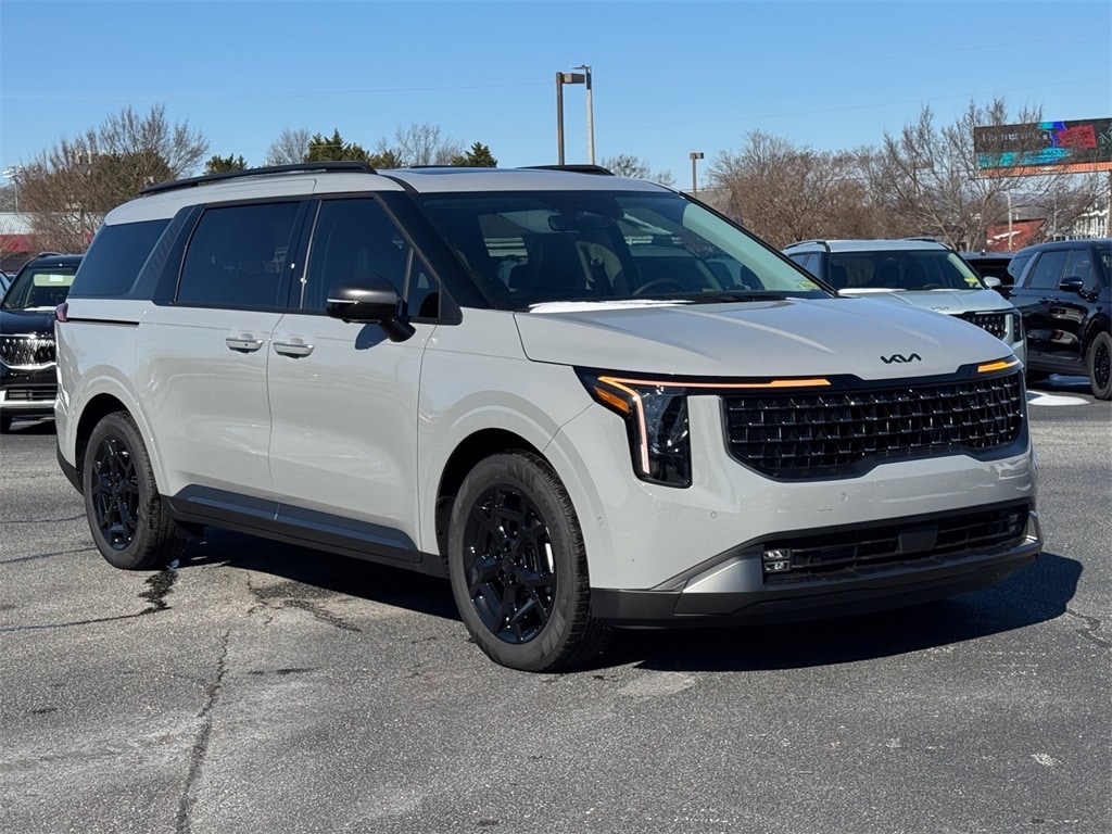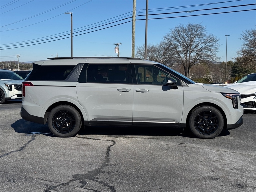 2026 Kia Carnival Hybrid SX Ceramic Silver 1.6L I4 DGI Hybrid Turbocharged DOHC 16V LEV3-SULEV30, 3rd row seats: split-bench, 4-Wheel Disc Brakes, 8 Speakers, ABS brakes, Air Conditioning, Alloy wheels, AM/FM radio: SiriusXM, Apple CarPlay & Android Auto, Artificial Leather Seat Trim, Auto High-beam Headlights, Auto-Dimming Mirror with HomeLink, Automatic temperature control, Brake assist, Bumpers: body-color, Carpeted Floor Mats (8-Passenger), Compass, Dark Edition Front Grille Trim, Dark Edition Interior Design, Dark Edition Mirror Caps, Dark Edition Roof Rails, Delay-off headlights, Driver door bin, Driver vanity mirror, Dual front impact airbags, Dual front side impact airbags, Electronic Stability Control, Emergency communication system, Exterior Parking Camera Rear, Four wheel independent suspension, Front anti-roll bar, Front Bucket Seats, Front Center Armrest, Front dual zone A/C, Front fog lights, Front reading lights, Fully automatic headlights, Heated and Ventilated Front Bucket Seats, Heated door mirrors, Heated front seats, Illuminated entry, Knee airbag, Leather Shift Knob, Leather steering wheel, Low tire pressure warning, Memory seat, Navigation System, Occupant sensing airbag, Outside temperature display, Overhead airbag, Overhead console, Panic alarm, Passenger door bin, Passenger vanity mirror, Power 2nd-Row Moonroof, Power door mirrors, Power driver seat, Power Liftgate, Power moonroof, Power passenger seat, Power steering, Power windows, Radio: : Navigation System with SiriusXM, Rain sensing wipers, Rear air conditioning, Rear anti-roll bar, Rear reading lights, Rear window defroster, Rear window wiper, Reclining 3rd row seat, Remote keyless entry, Security system, Small First Aid Kit, Speed control, Speed-sensing steering, Split folding rear seat, Spoiler, Steering wheel mounted audio controls, SX Dark Edition Package, Tachometer, Telescoping steering wheel, Tilt steering wheel, Traction control, Trip computer, Turn signal indicator mirrors, Variably intermittent wipers, Ventilated front seats, Wheels: 19" Black Alloy, Wheels: 19" Black D-Cut Customizing, 1.6L I4 DGI Hybrid Turbocharged DOHC 16V LEV3-SULEV30.