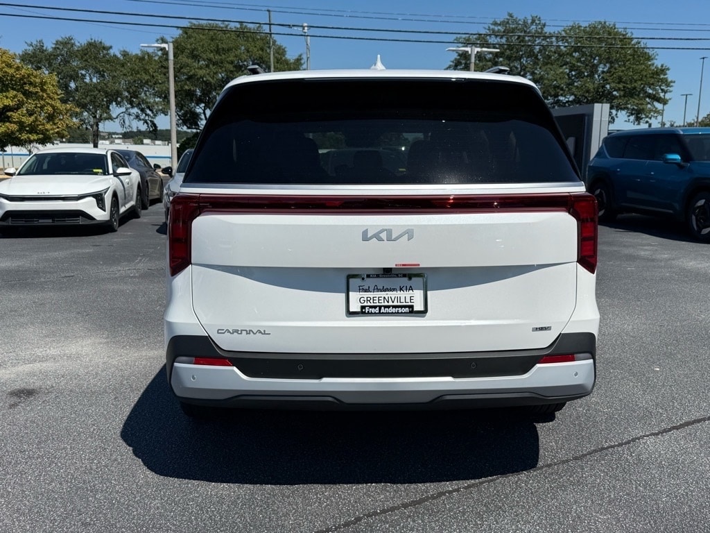2026 Kia Carnival Hybrid EX Snow White Pearl 1.6L I4 DGI Hybrid Turbocharged DOHC 16V LEV3-SULEV30, 3rd row seats: split-bench, 4-Wheel Disc Brakes, 8 Speakers, ABS brakes, Air Conditioning, Alloy wheels, AM/FM radio: SiriusXM, Apple CarPlay & Android Auto, Artificial Leather Seat Trim, Auto High-beam Headlights, Automatic temperature control, Brake assist, Bumpers: body-color, Carpeted Floor Mats (8-Passenger), Compass, Delay-off headlights, Driver door bin, Driver vanity mirror, Dual front impact airbags, Dual front side impact airbags, Electronic Stability Control, Emergency communication system, Exterior Parking Camera Rear, Four wheel independent suspension, Front anti-roll bar, Front Bucket Seats, Front Center Armrest, Front dual zone A/C, Front reading lights, Fully automatic headlights, Heated door mirrors, Heated Front Bucket Seats, Heated front seats, Illuminated entry, Knee airbag, Leather Shift Knob, Leather steering wheel, Low tire pressure warning, Memory seat, Navigation System, Occupant sensing airbag, Outside temperature display, Overhead airbag, Overhead console, Panic alarm, Passenger door bin, Passenger vanity mirror, Power door mirrors, Power driver seat, Power Liftgate, Power passenger seat, Power steering, Power windows, Radio: Navigation System w/SiriusXM, Rear air conditioning, Rear anti-roll bar, Rear reading lights, Rear window defroster, Rear window wiper, Reclining 3rd row seat, Remote keyless entry, Security system, Speed control, Speed-sensing steering, Split folding rear seat, Spoiler, Steering wheel mounted audio controls, Tachometer, Telescoping steering wheel, Tilt steering wheel, Traction control, Trip computer, Turn signal indicator mirrors, Variably intermittent wipers, Wheels: 19" Black Alloy, 1.6L I4 DGI Hybrid Turbocharged DOHC 16V LEV3-SULEV30.