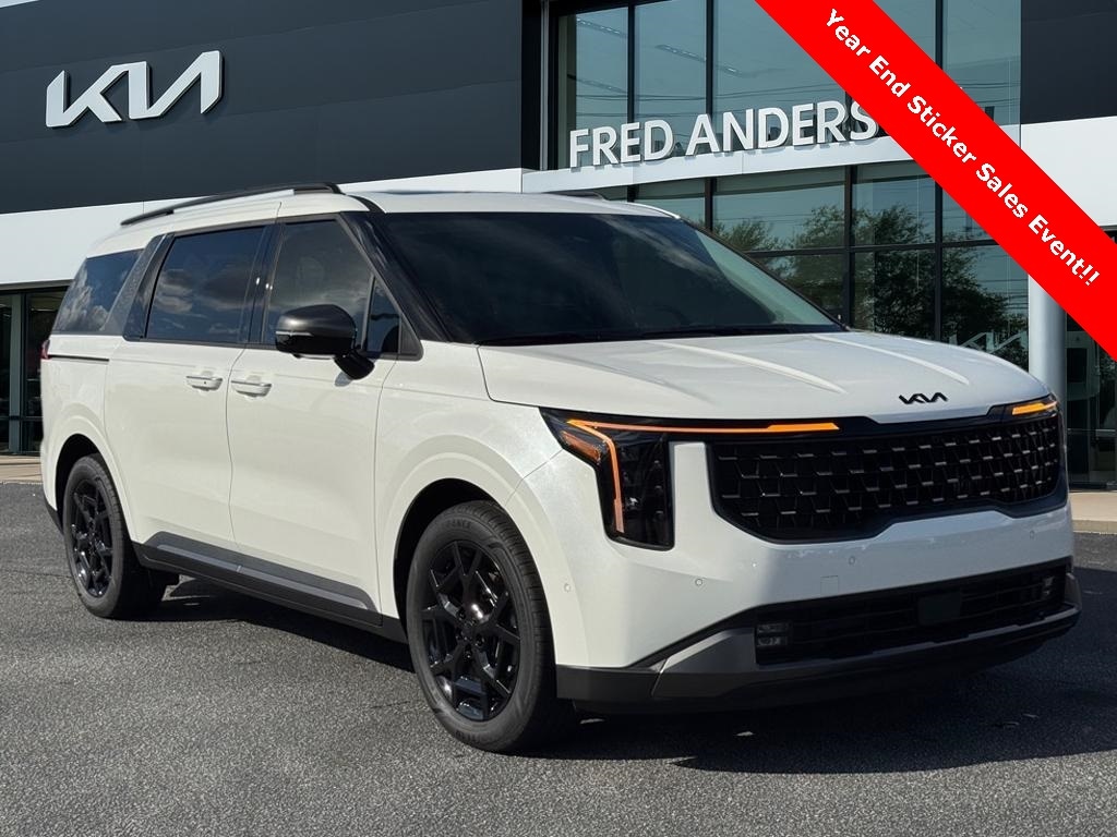 2026 Kia Carnival Hybrid SX Snow White Pearl 1.6L I4 DGI Hybrid Turbocharged DOHC 16V LEV3-SULEV30, 3rd row seats: split-bench, 4-Wheel Disc Brakes, 8 Speakers, ABS brakes, Air Conditioning, Alloy wheels, AM/FM radio: SiriusXM, Apple CarPlay & Android Auto, Artificial Leather Seat Trim, Auto High-beam Headlights, Automatic temperature control, Brake assist, Bumpers: body-color, Carpeted Floor Mats (8-Passenger), Compass, Dark Edition Front Grille Trim, Dark Edition Interior Design, Dark Edition Mirror Caps, Dark Edition Roof Rails, Delay-off headlights, Driver door bin, Driver vanity mirror, Dual front impact airbags, Dual front side impact airbags, Electronic Stability Control, Emergency communication system, Exterior Parking Camera Rear, Four wheel independent suspension, Front anti-roll bar, Front Bucket Seats, Front Center Armrest, Front dual zone A/C, Front fog lights, Front reading lights, Fully automatic headlights, Heated & Ventilated Front Bucket Seats, Heated door mirrors, Heated front seats, Illuminated entry, Knee airbag, Leather Shift Knob, Leather steering wheel, Low tire pressure warning, Memory seat, Navigation System, Occupant sensing airbag, Outside temperature display, Overhead airbag, Overhead console, Panic alarm, Passenger door bin, Passenger vanity mirror, Power 2nd-Row Moonroof, Power door mirrors, Power driver seat, Power Liftgate, Power moonroof, Power passenger seat, Power steering, Power windows, Radio: Navigation System w/SiriusXM, Rain sensing wipers, Rear air conditioning, Rear anti-roll bar, Rear reading lights, Rear window defroster, Rear window wiper, Reclining 3rd row seat, Remote keyless entry, Security system, Speed control, Speed-sensing steering, Split folding rear seat, Spoiler, Steering wheel mounted audio controls, SX Dark Edition Package, Tachometer, Telescoping steering wheel, Tilt steering wheel, Traction control, Trip computer, Turn signal indicator mirrors, Variably intermittent wipers, Ventilated front seats, Wheels: 19" Black Alloy, Wheels: 19" Black D-Cut Customizing, 1.6L I4 DGI Hybrid Turbocharged DOHC 16V LEV3-SULEV30.