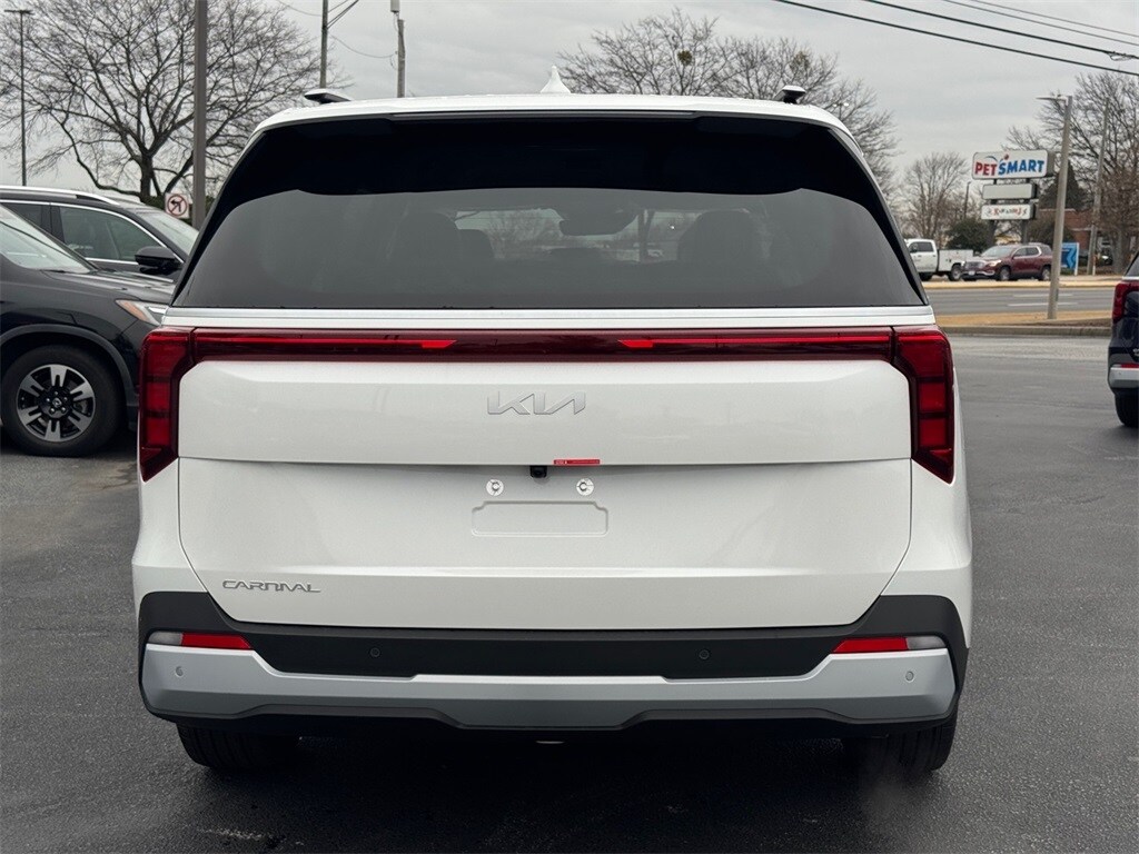 2026 Kia Carnival EX Snow White Pearl 3.51 Axle Ratio, 3rd row seats: split-bench, 4-Wheel Disc Brakes, 8 Speakers, ABS brakes, Air Conditioning, Alloy wheels, AM/FM radio: SiriusXM, Apple CarPlay & Android Auto, Artificial Leather Seat Trim, Auto High-beam Headlights, Auto-Dimming Mirror with HomeLink, Automatic temperature control, Brake assist, Bumpers: body-color, Carpeted Floor Mats (8-Passenger), Compass, Delay-off headlights, Driver door bin, Driver vanity mirror, Dual front impact airbags, Dual front side impact airbags, Electronic Stability Control, Emergency communication system, Exterior Parking Camera Rear, Four wheel independent suspension, Front anti-roll bar, Front Bucket Seats, Front Center Armrest, Front dual zone A/C, Front reading lights, Fully automatic headlights, Heated door mirrors, Heated Front Bucket Seats, Heated front seats, Illuminated entry, Knee airbag, Leather Shift Knob, Leather steering wheel, Low tire pressure warning, Memory seat, Navigation System, Occupant sensing airbag, Outside temperature display, Overhead airbag, Overhead console, Panic alarm, Passenger door bin, Passenger vanity mirror, Power door mirrors, Power driver seat, Power Liftgate, Power passenger seat, Power steering, Power windows, Radio: AM/FM/HD Audio System, Rear air conditioning, Rear anti-roll bar, Rear reading lights, Rear window defroster, Rear window wiper, Reclining 3rd row seat, Remote keyless entry, Security system, Speed control, Speed-sensing steering, Split folding rear seat, Spoiler, Steering wheel mounted audio controls, Tachometer, Telescoping steering wheel, Tilt steering wheel, Traction control, Trip computer, Turn signal indicator mirrors, Variably intermittent wipers, Wheels: 7.5J x 19" Machine-Finished Alloy.