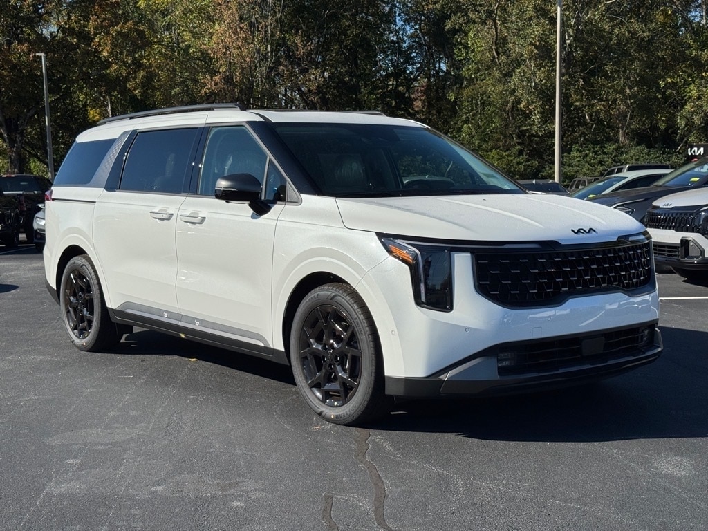2026 Kia Carnival SX Prestige Snow White Pearl 12 Speakers, 3.51 Axle Ratio, 3rd row seats: split-bench, 4-Wheel Disc Brakes, ABS brakes, Air Conditioning, Alloy wheels, AM/FM radio: SiriusXM, Apple CarPlay & Android Auto, Auto High-beam Headlights, Auto-dimming Rear-View mirror, Automatic temperature control, Brake assist, Bumpers: body-color, Cargo Net, Carpeted Floor Mats (8-Passenger), Compass, Delay-off headlights, Driver door bin, Driver vanity mirror, Dual front impact airbags, Dual front side impact airbags, Electronic Stability Control, Emergency communication system, Exterior Parking Camera Rear, Four wheel independent suspension, Front anti-roll bar, Front Bucket Seats, Front Center Armrest, Front dual zone A/C, Front fog lights, Front reading lights, Fully automatic headlights, Garage door transmitter: HomeLink, Heads-Up Display, Heated & Ventilated Front Bucket Seats, Heated door mirrors, Heated front seats, Heated steering wheel, Illuminated entry, Knee airbag, Leather Shift Knob, Leather steering wheel, Low tire pressure warning, Memory seat, Navigation System, Occupant sensing airbag, Outside temperature display, Overhead airbag, Overhead console, Panic alarm, Passenger door bin, Passenger vanity mirror, Power 2nd-Row Moonroof, Power door mirrors, Power driver seat, Power Liftgate, Power moonroof, Power passenger seat, Power steering, Power windows, Pure Leather Seat Trim, Radio: AM/FM/HD Audio System, Rain sensing wipers, Rear air conditioning, Rear anti-roll bar, Rear reading lights, Rear window defroster, Rear window wiper, Reclining 3rd row seat, Remote keyless entry, Security system, Speed control, Speed-sensing steering, Split folding rear seat, Spoiler, Steering wheel mounted audio controls, Tachometer, Telescoping steering wheel, Tilt steering wheel, Traction control, Trip computer, Turn signal indicator mirrors, Variably intermittent wipers, Ventilated front seats, Wheels: 7.5J x 19" Alloy Dark Edition.