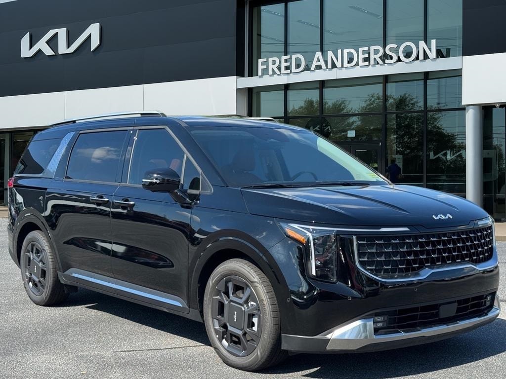 2026 Kia Carnival SX Aurora Black Pearl 3.51 Axle Ratio, 3rd row seats: split-bench, 4-Wheel Disc Brakes, 8 Speakers, ABS brakes, Air Conditioning, Alloy wheels, AM/FM radio: SiriusXM, Apple CarPlay & Android Auto, Artificial Leather Seat Trim, Auto High-beam Headlights, Automatic temperature control, Brake assist, Bumpers: body-color, Carpeted Floor Mats (8-Passenger), Compass, Delay-off headlights, Driver door bin, Driver vanity mirror, Dual front impact airbags, Dual front side impact airbags, Electronic Stability Control, Emergency communication system, Exterior Parking Camera Rear, Four wheel independent suspension, Front anti-roll bar, Front Bucket Seats, Front Center Armrest, Front dual zone A/C, Front fog lights, Front reading lights, Fully automatic headlights, Heated & Ventilated Front Bucket Seats, Heated door mirrors, Heated front seats, Illuminated entry, Knee airbag, Leather Shift Knob, Leather steering wheel, Low tire pressure warning, Memory seat, Navigation System, Occupant sensing airbag, Outside temperature display, Overhead airbag, Overhead console, Panic alarm, Passenger door bin, Passenger vanity mirror, Power 2nd-Row Moonroof, Power door mirrors, Power driver seat, Power Liftgate, Power moonroof, Power passenger seat, Power steering, Power windows, Radio: AM/FM/HD Audio System, Rain sensing wipers, Rear air conditioning, Rear anti-roll bar, Rear reading lights, Rear window defroster, Rear window wiper, Reclining 3rd row seat, Remote keyless entry, Security system, Speed control, Speed-sensing steering, Split folding rear seat, Spoiler, Steering wheel mounted audio controls, Tachometer, Telescoping steering wheel, Tilt steering wheel, Traction control, Trip computer, Turn signal indicator mirrors, Variably intermittent wipers, Ventilated front seats, Wheels: 7.5J x 19" Alloy Dark Edition, Wheels: 7.5J x 19" Black Alloy.