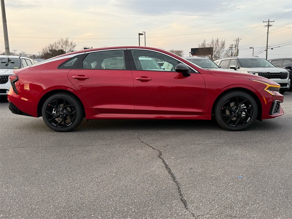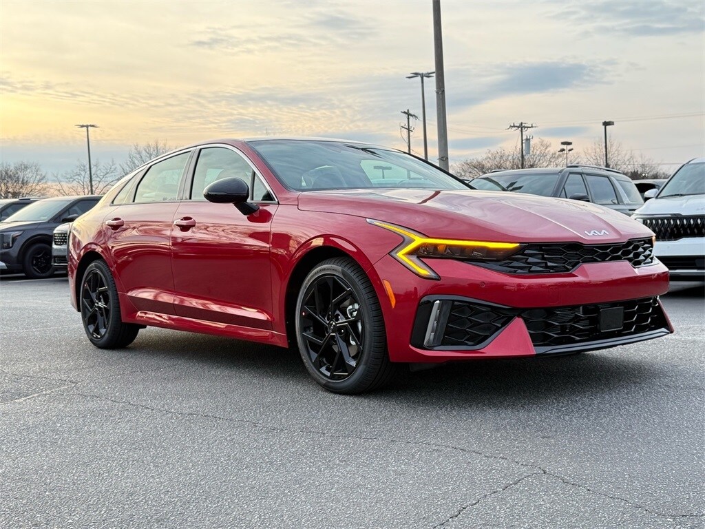 2026 Kia K5 GT-Line Runway Red 4-Wheel Disc Brakes, 6 Speakers, ABS brakes, Active Sound Design, Air Conditioning, Alloy wheels, AM/FM radio: SiriusXM, Auto High-beam Headlights, Auto-Dimming Mirror with HomeLink, Automatic temperature control, Bose Premium Audio, Brake assist, Bumpers: body-color, Cargo Mat, Carpeted Floor Mats, Delay-off headlights, Driver door bin, Driver vanity mirror, Dual front impact airbags, Dual front side impact airbags, Electronic Stability Control, Emergency communication system: Kia Connect (includes 1 year free trial), Four wheel independent suspension, Front anti-roll bar, Front Bucket Seats, Front Center Armrest, Front dual zone A/C, Front fog lights, Front reading lights, Fully automatic headlights, GT-Line Premium Package, Heated door mirrors, Heated Front Bucket Seats, Heated front seats, Illuminated entry, Knee airbag, Leather Shift Knob, Leather steering wheel, LED Interior Lighting, LED Trunk Light, Low tire pressure warning, Navigation System, Occupant sensing airbag, Outside temperature display, Overhead airbag, Overhead console, Panic alarm, Panoramic Sunroof, Passenger door bin, Passenger vanity mirror, Power door mirrors, Power driver seat, Power steering, Power windows, Radio data system, Radio: AM/FM Audio System, Rear anti-roll bar, Rear seat center armrest, Rear side impact airbag, Rear window defroster, Remote keyless entry, Security system, Speed control, Speed-sensing steering, Split folding rear seat, Sport steering wheel, Steering wheel mounted audio controls, Tachometer, Telescoping steering wheel, Tilt steering wheel, Traction control, Trip computer, Turn signal indicator mirrors, Variably intermittent wipers, Wheels: 18" x 7.5J Gloss Black Machined Finish Alloy, Wheels: 18" x 7.5J Unique Gloss Black Alloy.