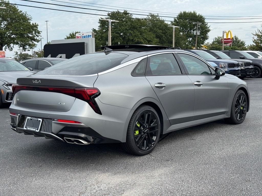 2026 Kia K5 GT Steel Matte Gray 12.3" Instrument Display, 2-Position Memory Driver's Seat & Outside Mirrors, 4-Wheel Disc Brakes, 6 Speakers, ABS brakes, Active Sound Design, Air Conditioning, Alloy wheels, AM/FM radio: SiriusXM, Auto High-beam Headlights, Auto Up/Down Front Passenger & Rear Windows, Automatic temperature control, Blind-Spot View Monitor, Bose Premium Audio, Brake assist, Bumpers: body-color, Cargo Mat, Cargo Net, Cargo Tray, Carpeted Floor Mats, Delay-off headlights, Driver door bin, Driver vanity mirror, Dual front impact airbags, Dual front side impact airbags, Electronic Stability Control, Emergency communication system: Kia Connect (includes 1 year free trial), Four wheel independent suspension, Front anti-roll bar, Front Bucket Seats, Front Center Armrest, Front dual zone A/C, Front fog lights, Front reading lights, Fully automatic headlights, GT1 Package, Heated door mirrors, Heated front seats, Heated Sport Bucket Seats, Heated Steering Wheel, Illuminated entry, Knee airbag, Leather Shift Knob, Leather steering wheel, Low tire pressure warning, Navigation System, Occupant sensing airbag, Outside temperature display, Overhead airbag, Overhead console, Panic alarm, Parking Collision Avoidance-Assist - Reverse, Parking Distance Warning - Side, Passenger door bin, Passenger vanity mirror, Power door mirrors, Power driver seat, Power Folding Mirrors, Power Front Passenger Seat, Power moonroof, Power steering, Power windows, Radio data system, Radio: AM/FM Audio System, Rear anti-roll bar, Rear reading lights, Rear seat center armrest, Rear side impact airbag, Rear window defroster, Remote keyless entry, Security system, Smartphone Digital Key, Speed control, Speed-sensing steering, Split folding rear seat, Sport steering wheel, Steering wheel mounted audio controls, Surround View Monitor, SynTex Seat Trim, Tachometer, Telescoping steering wheel, Tilt steering wheel, Traction control, Trip computer, Turn signal indicator mirrors, Variably intermittent wipers, Ventilated Front Seats, Wheels: 19" x 8.0J Gloss Black Custom Alloy, Wheels: 19" x 8.0J Gloss Black Machined Finish Alloy.