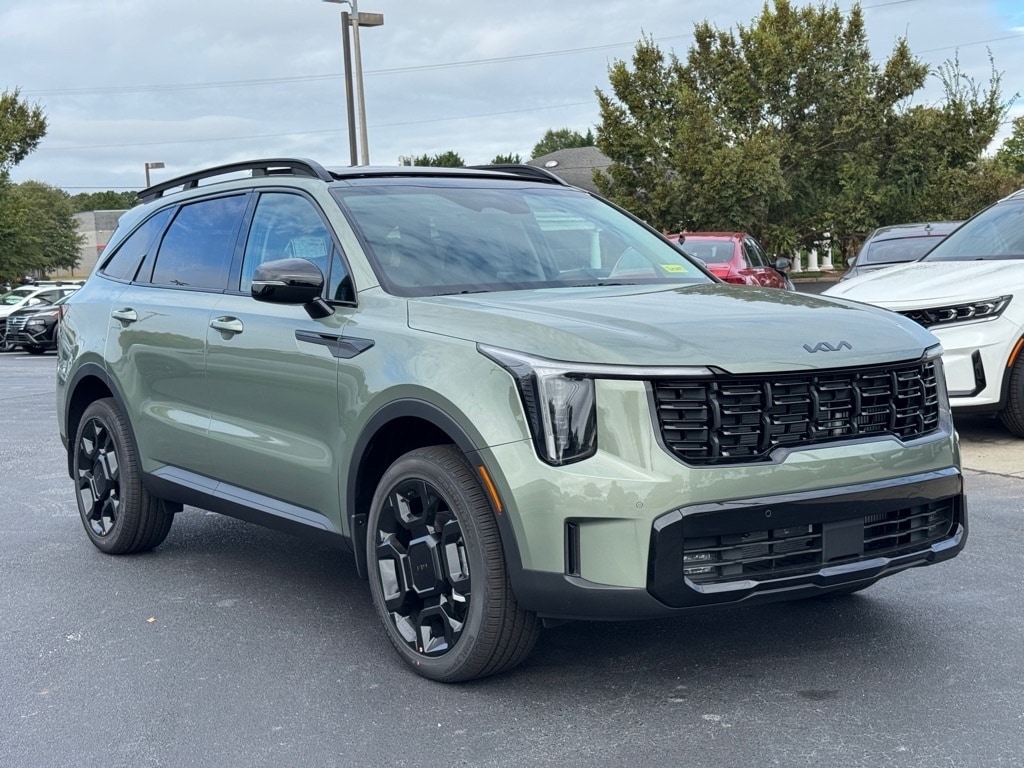 2026 Kia Sorento EX Jungle Green AWD, 3rd row seats: split-bench, 4-Wheel Disc Brakes, ABS brakes, Air Conditioning, Alloy wheels, AM/FM radio: SiriusXM, Apple CarPlay & Android Auto, Auto High-beam Headlights, Auto-dimming Rear-View mirror, Automatic temperature control, Brake assist, Bumpers: body-color, Cargo Cover, Carpet Cargo Mat w/Seatback Protection, Carpeted Floor Mats, Delay-off headlights, Driver door bin, Driver vanity mirror, Dual front impact airbags, Dual front side impact airbags, Electronic Stability Control, Emergency communication system: 911 Connect, Exterior Parking Camera Rear, Four wheel independent suspension, Front anti-roll bar, Front Bucket Seats, Front Center Armrest, Front dual zone A/C, Front fog lights, Front reading lights, Fully automatic headlights, Heated door mirrors, Heated Front Bucket Seats, Heated front seats, Illuminated entry, Knee airbag, Leather Shift Knob, Leather steering wheel, Low tire pressure warning, Navigation System, Occupant sensing airbag, Outside temperature display, Overhead airbag, Overhead console, Panic alarm, Passenger door bin, Passenger vanity mirror, Power door mirrors, Power driver seat, Power Liftgate, Power passenger seat, Power steering, Power windows, Radio data system, Radio: AM/FM Standard Sound System, Rear anti-roll bar, Rear reading lights, Rear side impact airbag, Rear window defroster, Rear window wiper, Remote keyless entry, Security system, Speed control, Speed-sensing steering, Split folding rear seat, Spoiler, Steering wheel mounted audio controls, SynTex Artificial Leather Seat Trim, Tachometer, Telescoping steering wheel, Tilt steering wheel, Traction control, Trip computer, Turn signal indicator mirrors, Variably intermittent wipers, AWD.