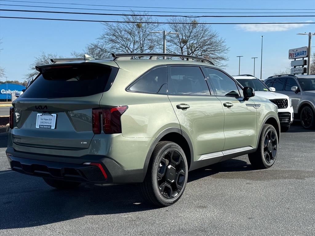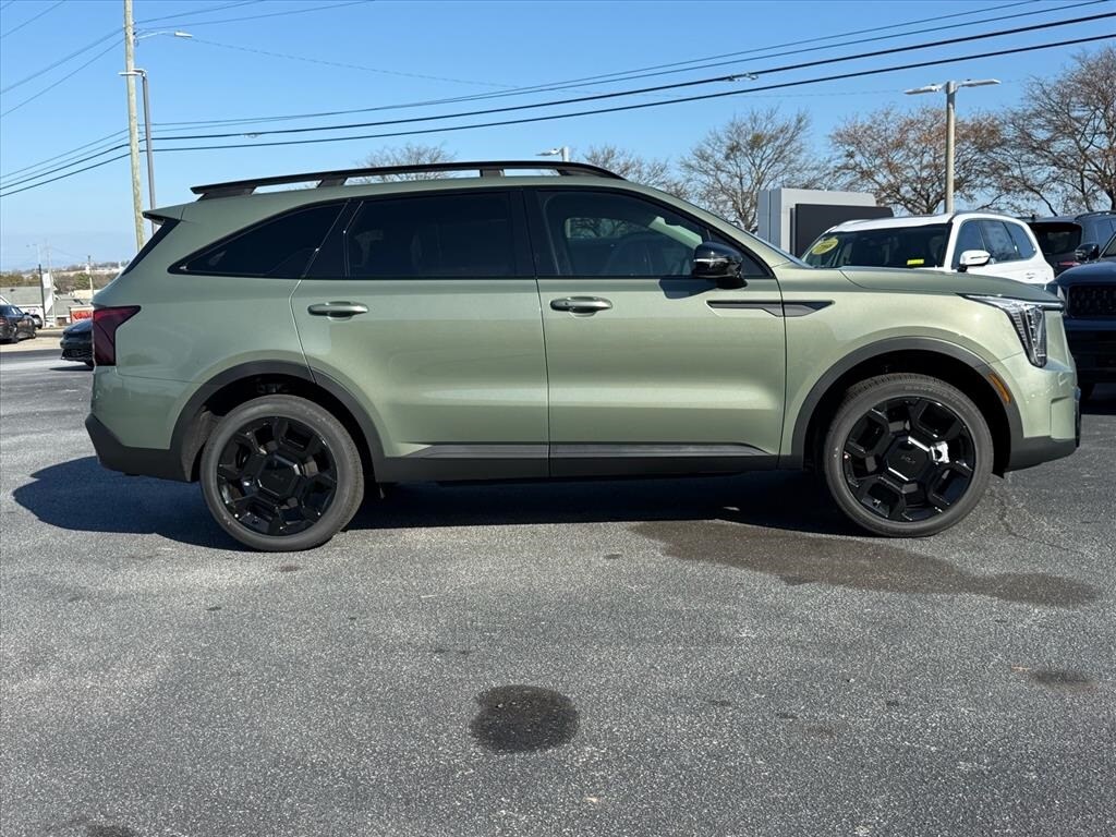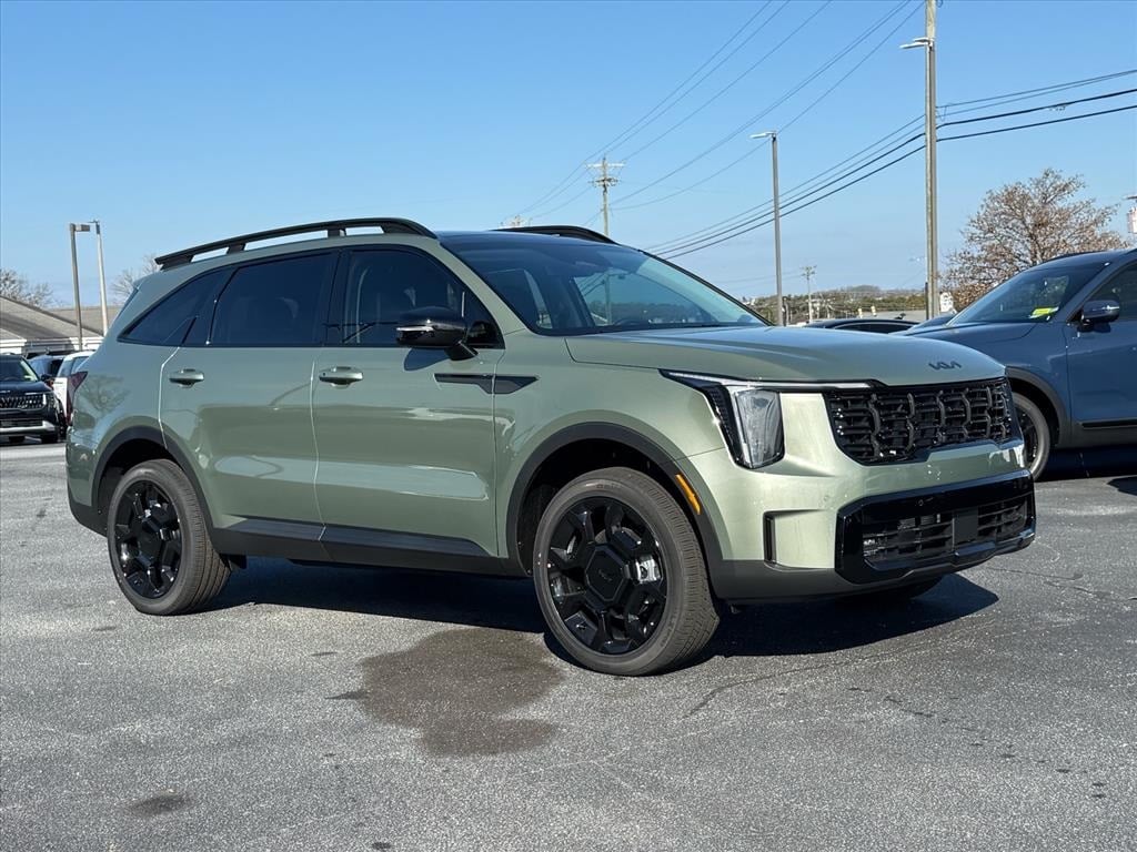2026 Kia Sorento X-Line EX Jungle Green AWD, 12 Speakers, 3rd row seats: split-bench, 4-Wheel Disc Brakes, ABS brakes, Air Conditioning, Alloy wheels, AM/FM radio: SiriusXM, Apple CarPlay & Android Auto, Auto High-beam Headlights, Auto-Dimming Mirror w/HomeLink (PnP), Auto-dimming Rear-View mirror, Automatic temperature control, Brake assist, Bumpers: body-color, Carpet Cargo Mat w/Seatback Protection, Carpeted Floor Mats, Delay-off headlights, Driver door bin, Driver vanity mirror, Dual front impact airbags, Dual front side impact airbags, Electronic Stability Control, Emergency communication system: 911 Connect, Exterior Parking Camera Rear, Four wheel independent suspension, Front anti-roll bar, Front Bucket Seats, Front Center Armrest, Front dual zone A/C, Front fog lights, Front reading lights, Fully automatic headlights, Heated door mirrors, Heated Front Bucket Seats, Heated front seats, Illuminated entry, Knee airbag, Leather Shift Knob, Leather steering wheel, Low tire pressure warning, Navigation System, Occupant sensing airbag, Outside temperature display, Overhead airbag, Overhead console, Panic alarm, Passenger door bin, Passenger vanity mirror, Power door mirrors, Power driver seat, Power Liftgate, Power moonroof, Power passenger seat, Power steering, Power windows, Radio data system, Radio: AM/FM Standard Sound System, Rear anti-roll bar, Rear reading lights, Rear side impact airbag, Rear window defroster, Rear window wiper, Remote keyless entry, Security system, Speed control, Speed-sensing steering, Split folding rear seat, Spoiler, Steering wheel mounted audio controls, SynTex Artificial Leather Seat Trim, Tachometer, Telescoping steering wheel, Tilt steering wheel, Traction control, Trip computer, Turn signal indicator mirrors, Variably intermittent wipers, Wheels: 20" Gloss Black X-Line Alloy, AWD.