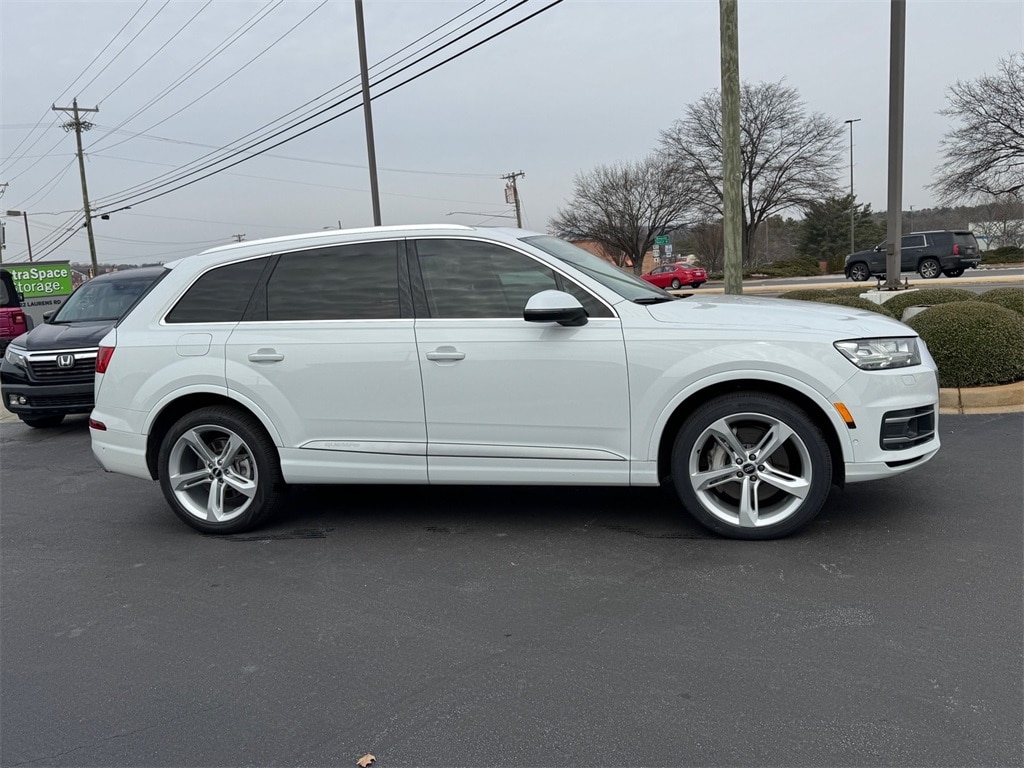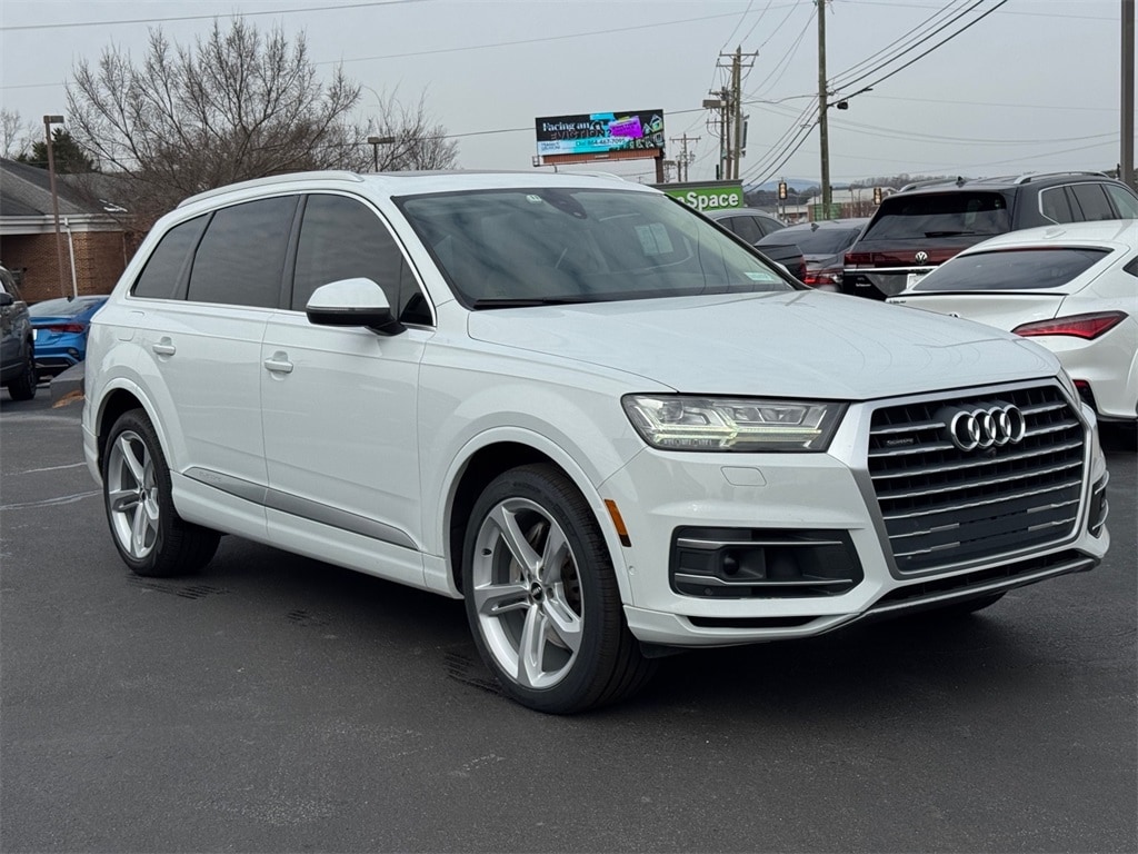 Clean CARFAX. 2019 Audi Q7 55 Prestige quattro Glacier White 10 Speakers, 3-Spoke Multifunction Steering Wheel w/Paddles, 3.204 Axle Ratio, 3D Bose Surround Sound System, 3rd row seats: bench, 4-Wheel Disc Brakes, 4-Zone Automatic Climate Control, 7 Pin Connector for Towing Hitch, ABS brakes, Air Conditioning, Alloy wheels, AM/FM radio: SiriusXM, Audi Active Lane Assist, Audi Adaptive Cruise Control w/Traffic Jam Assist, Audi Park Steering Assist, Audi Phone Box w/Wireless Charging, Audi Pre Sense Front, Audi Side Assist w/Pre Sense Rear, Audi smartphone interface (Apple CarPlay/Android Auto), Audi Virtual Cockpit, Auto-dimming Rear-View mirror, Automatic temperature control, Black Rubber All-Weather Floor Mats (Set of 4), Brake assist, Bumpers: body-color, CD player, Cold Weather Package, Compass, Convenience Package, Delay-off headlights, Driver & Passenger Front Seats w/Ventilation, Driver Assistance Package, Driver door bin, Driver vanity mirror, Driver's Seat Mounted Armrest, Dual front impact airbags, Dual front side impact airbags, Electronic Stability Control, Emergency communication system: Audi connect CARE, Exterior Parking Camera Rear, Four wheel independent suspension, Front & Rear Doors Audi Beam-Rings, Front anti-roll bar, Front Bucket Seats, Front dual zone A/C, Front fog lights, Front reading lights, Fully automatic headlights, Garage door transmitter: HomeLink, Head-Up Display, Heated Auto-Dimming Power Folding Exterior Mirrors, Heated door mirrors, Heated Front Bucket Seats, Heated front seats, Heated Rear Seats, High intensity discharge headlights: Xenon plus, High-Beam Assistant, High-Gloss Black/Terra Brown Walnut Wood Inlays, Illuminated entry, Leather Seating Surfaces, Leather Shift Knob, Leather steering wheel, LED Headlights w/Dynamic Indicators, LED Interior Lighting Package, Low tire pressure warning, Memory seat, Multicolor Ambient Interior Lighting Plus Package, Navigation system: MMI Navigation plus, Occupant sensing airbag, Outside temperature display, Overhead airbag, Panic alarm, Passenger door bin, Passenger seat mounted armrest, Passenger vanity mirror, Power Closing Doors, Power door mirrors, Power driver seat, Power Liftgate, Power moonroof, Power passenger seat, Power steering, Power windows, Prestige Package, Privacy Trunk Cover, Radio data system, Radio: Audi MMI Navigation Plus, Rain sensing wipers, Rear air conditioning, Rear anti-roll bar, Rear Door/Side Windows & Tailgate Sunshades, Rear fog lights, Rear reading lights, Rear seat center armrest, Rear Seat Entertainment Preparation, Rear window defroster, Rear window wiper, Remote keyless entry, Roof rack: rails only, Security system, Speed control, Speed-sensing steering, Split folding rear seat, Spoiler, Steering wheel memory, Steering wheel mounted audio controls, Tachometer, Telescoping steering wheel, Tilt steering wheel, Topview Camera System, Towing Package, Traction control, Traffic Sign Recognition, Trip computer, Turn signal indicator mirrors, USB Cables, Variably intermittent wipers, Vehicle Jack, Warm Weather Package, Wheels: 19" 5-V-Spoke Design, Wheels: 20" 10-Spoke-Star Design Bi-Color, Wheels: 21" 5-Spoke-Blade-Design.