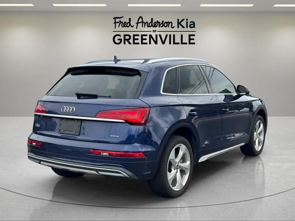 2021 Audi Q5 45 Premium Plus quattro Navarra Blue Metallic Atlas Beige Leather, Auto High-beam Headlights, Auto-dimming Rear-View mirror, Automatic temperature control, Delay-off headlights, Front dual zone A/C, Front fog lights, Garage door transmitter: HomeLink, Genuine wood console insert, Genuine wood dashboard insert, Genuine wood door panel insert, Heated 8-Way Power Front Bucket Seats, Heated front seats, Leather Seating Surfaces, Power driver seat, Power Liftgate, Power passenger seat, Rain sensing wipers, Rear air conditioning, Rear fog lights, Remote keyless entry, Steering wheel mounted audio controls, Wheels: 18" 5-Arm-Star Design, 10 Speakers, 4-Wheel Disc Brakes, 5.302 Axle Ratio, ABS brakes, Air Conditioning, Alloy wheels, AM/FM radio, Brake assist, Bumpers: body-color, Compass, Driver door bin, Driver vanity mirror, Dual front impact airbags, Dual front side impact airbags, Electronic Stability Control, Emergency communication system: Audi connect CARE, Exterior Parking Camera Rear, Four wheel independent suspension, Front anti-roll bar, Front Bucket Seats, Front Center Armrest, Front reading lights, Heated door mirrors, Illuminated entry, Leather Shift Knob, Low tire pressure warning, Occupant sensing airbag, Outside temperature display, Overhead airbag, Overhead console, Panic alarm, Passenger door bin, Passenger vanity mirror, Power door mirrors, Power steering, Power windows, Radio data system, Radio: Audi Sound System, Rear anti-roll bar, Rear reading lights, Rear seat center armrest, Rear window defroster, Rear window wiper, Roof rack, Security system, Speed control, Speed-sensing steering, Speed-Sensitive Wipers, Split folding rear seat, Spoiler, Tachometer, Telescoping steering wheel, Tilt steering wheel, Traction control, Trip computer, Turn signal indicator mirrors, Variably intermittent wipers, Atlas Beige Leather, Auto High-beam Headlights, Auto-dimming Rear-View mirror, Automatic temperature control, Delay-off headlights, Front dual zone A/C, Front fog lights, Garage door transmitter: HomeLink, Genuine wood console insert, Genuine wood dashboard insert, Genuine wood door panel insert, Heated 8-Way Power Front Bucket Seats, Heated front seats, Leather Seating Surfaces, Power driver seat, Power Liftgate, Power passenger seat, Rain sensing wipers, Rear air conditioning, Rear fog lights, Remote keyless entry, Steering wheel mounted audio controls, Wheels: 18" 5-Arm-Star Design.