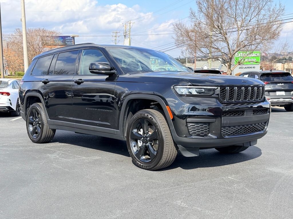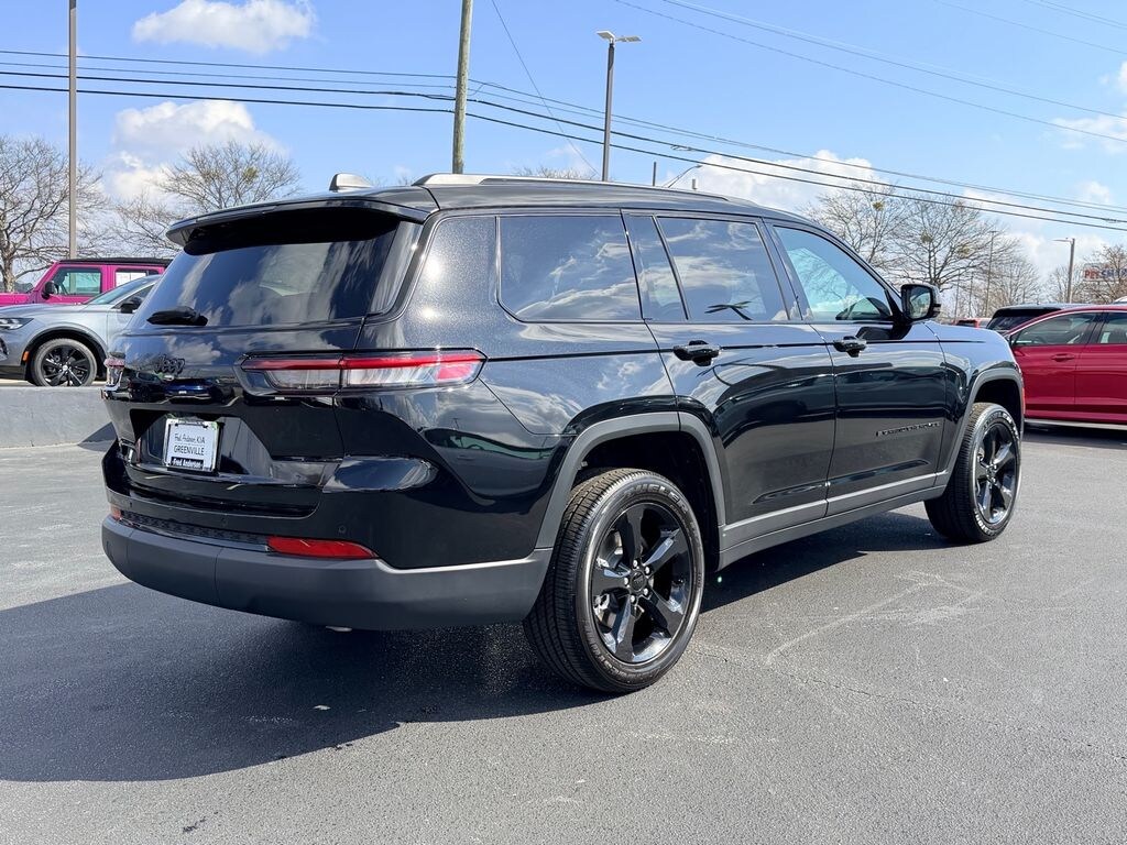 CARFAX One-Owner. Clean CARFAX. 2025 Jeep Grand Cherokee L Altitude X Diamond Black Crystal Pearlcoat 115V Auxiliary Power Outlet, 3rd Row Charge-Only USB Ports, Altitude X, Automatic temperature control, Black Headliner, Capri Leatherette/Suede Seats, Delete Laredo Badge, Front dual zone A/C, Gloss Black Exterior Accents, Heated Front Seats, Heated Steering Wheel, ParkView Rear Back-Up Camera, Power Liftgate, Power Sunroof, Quick Order Package 23M Altitude X, Rain Sensitive Windshield Wipers, Rear air conditioning, Remote keyless entry, Remote Start System, Selectable Tire Fill Alert, Steering wheel mounted audio controls, Wheels: 18" x 8.0" Fully Painted Aluminum 1, Wireless Charging Pad, 3.45 Rear Axle Ratio, 3rd row seats: split-bench, 4-Wheel Disc Brakes, 6 Speakers, ABS brakes, Air Conditioning, Alloy wheels, AM/FM radio: SiriusXM, Anti-whiplash front head restraints, Brake assist, Bumpers: body-color, Cloth Seats, Compass, Delay-off headlights, Driver door bin, Driver vanity mirror, Dual front impact airbags, Dual front side impact airbags, Electronic Stability Control, Emergency communication system, Four wheel independent suspension, Front anti-roll bar, Front Bucket Seats, Front Center Armrest w/Storage, Front License Plate Bracket, Front reading lights, Fully automatic headlights, Heated door mirrors, Illuminated entry, Knee airbag, Low tire pressure warning, Manual Fold Seatbacks, Model Year Tracking, Normal Duty Suspension, Occupant sensing airbag, Outside temperature display, Overhead airbag, Overhead console, Panic alarm, Passenger door bin, Passenger vanity mirror, Power door mirrors, Power driver seat, Power steering, Power windows, Radio data system, Radio: Uconnect 5 w/8.4" Display, Rear anti-roll bar, Rear reading lights, Rear window defroster, Rear window wiper, Reclining 3rd row seat, Security system, Speed control, Speed-Sensitive Wipers, Split folding rear seat, Spoiler, Tachometer, Telescoping steering wheel, Tilt steering wheel, Traction control, Trip computer, Variably intermittent wipers, Voltmeter, Wheels: 18" x 8.0" Fully Painted Aluminum, Wheels: 20" x 8.5" Gloss Black Painted Aluminum, 115V Auxiliary Power Outlet, 3rd Row Charge-Only USB Ports, Altitude X, Automatic temperature control, Black Headliner, Capri Leatherette/Suede Seats, Delete Laredo Badge, Front dual zone A/C, Gloss Black Exterior Accents, Heated Front Seats, Heated Steering Wheel, ParkView Rear Back-Up Camera, Power Liftgate, Power Sunroof, Quick Order Package 23M Altitude X, Rain Sensitive Windshield Wipers, Rear air conditioning, Remote keyless entry, Remote Start System, Selectable Tire Fill Alert, Steering wheel mounted audio controls, Wheels: 18" x 8.0" Fully Painted Aluminum 1, Wireless Charging Pad.